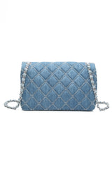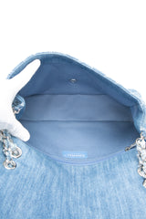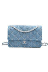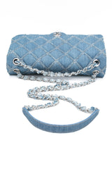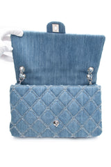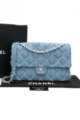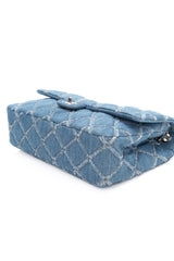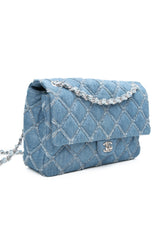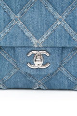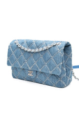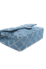 CHANEL Blue Frayed Denim Quilted Large Flap Bag