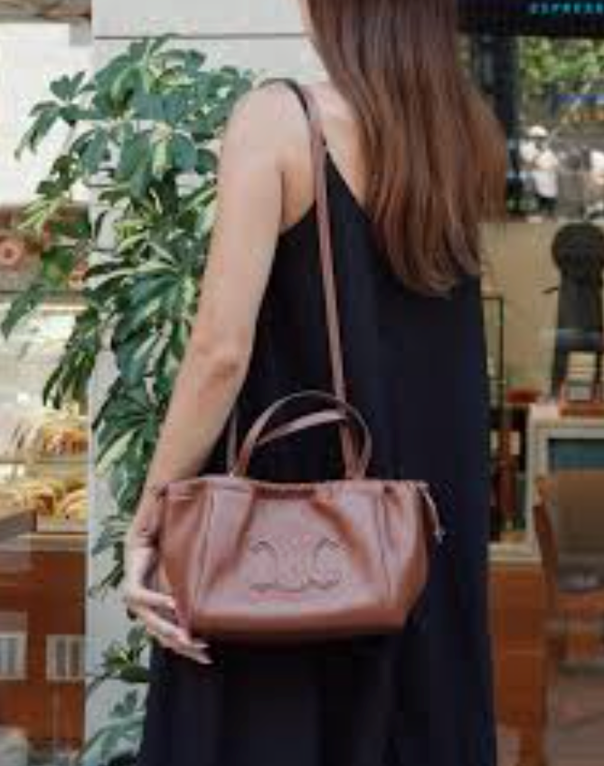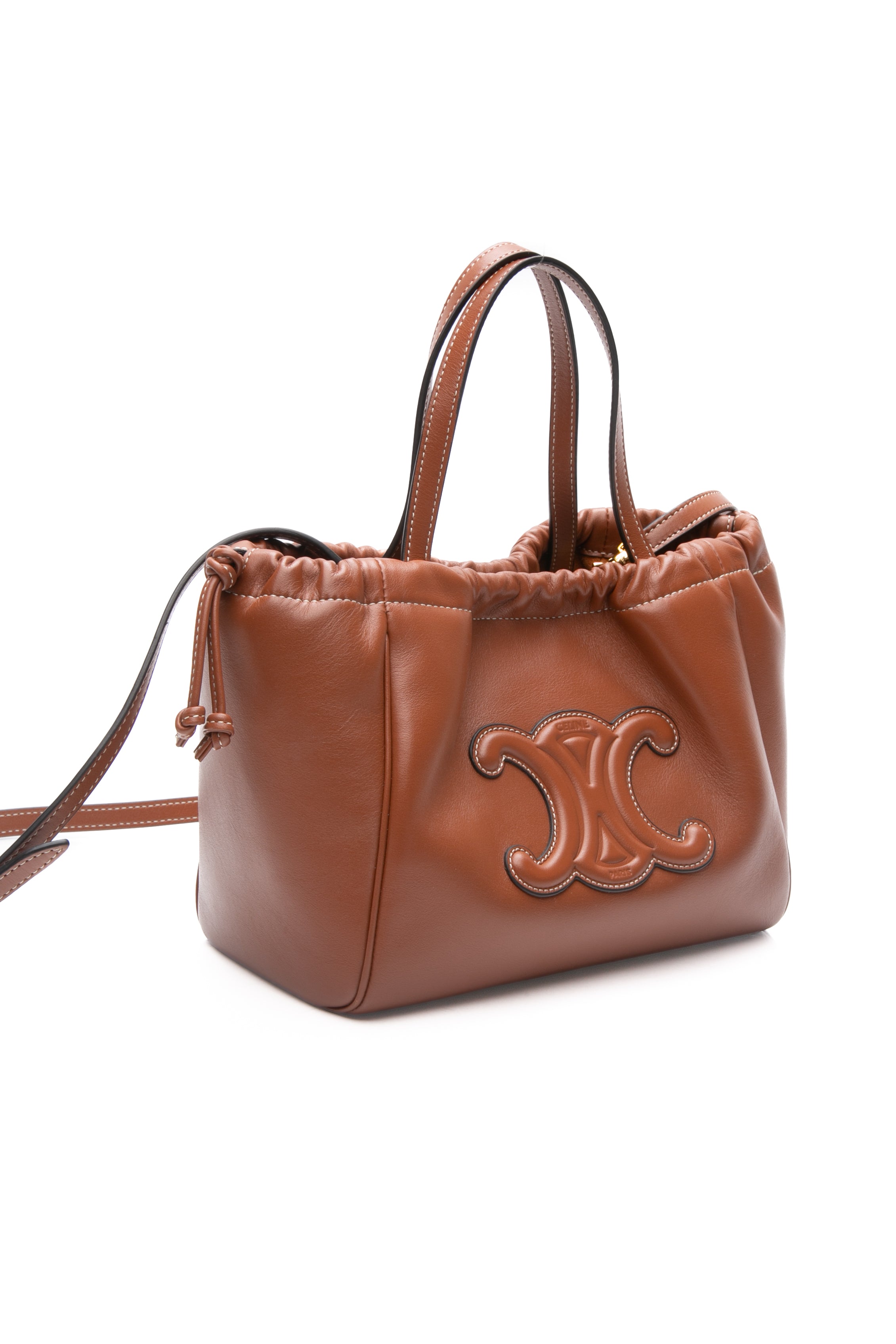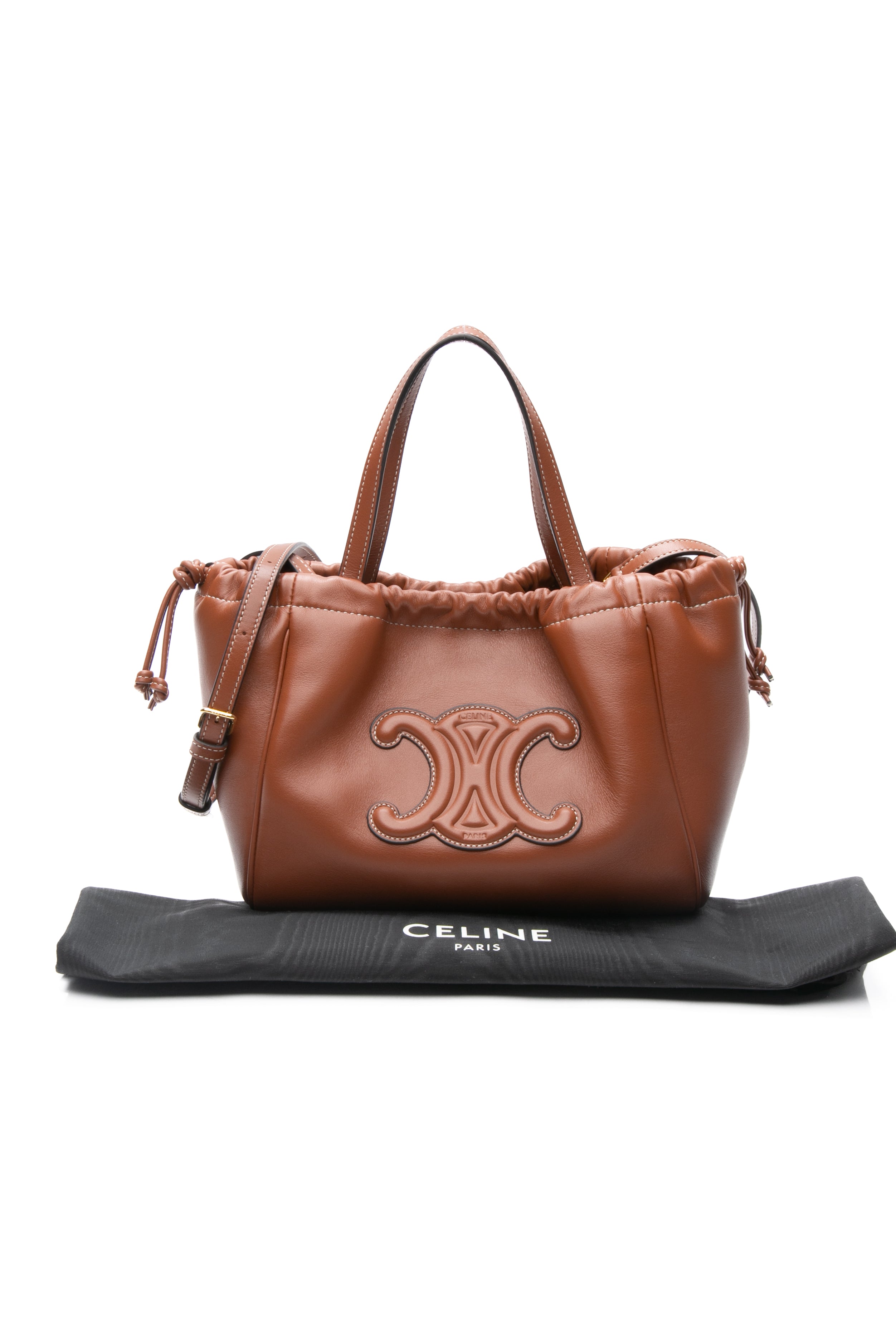 CELINE Triomphe Cabas Small Calfskin Cuir Drawstring Satchel Crossbody Bag