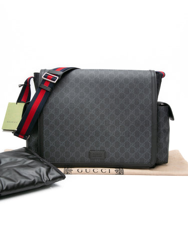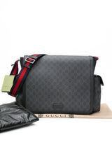 GUCCI Black Grey GG Supreme Large Changing Diaper Bag