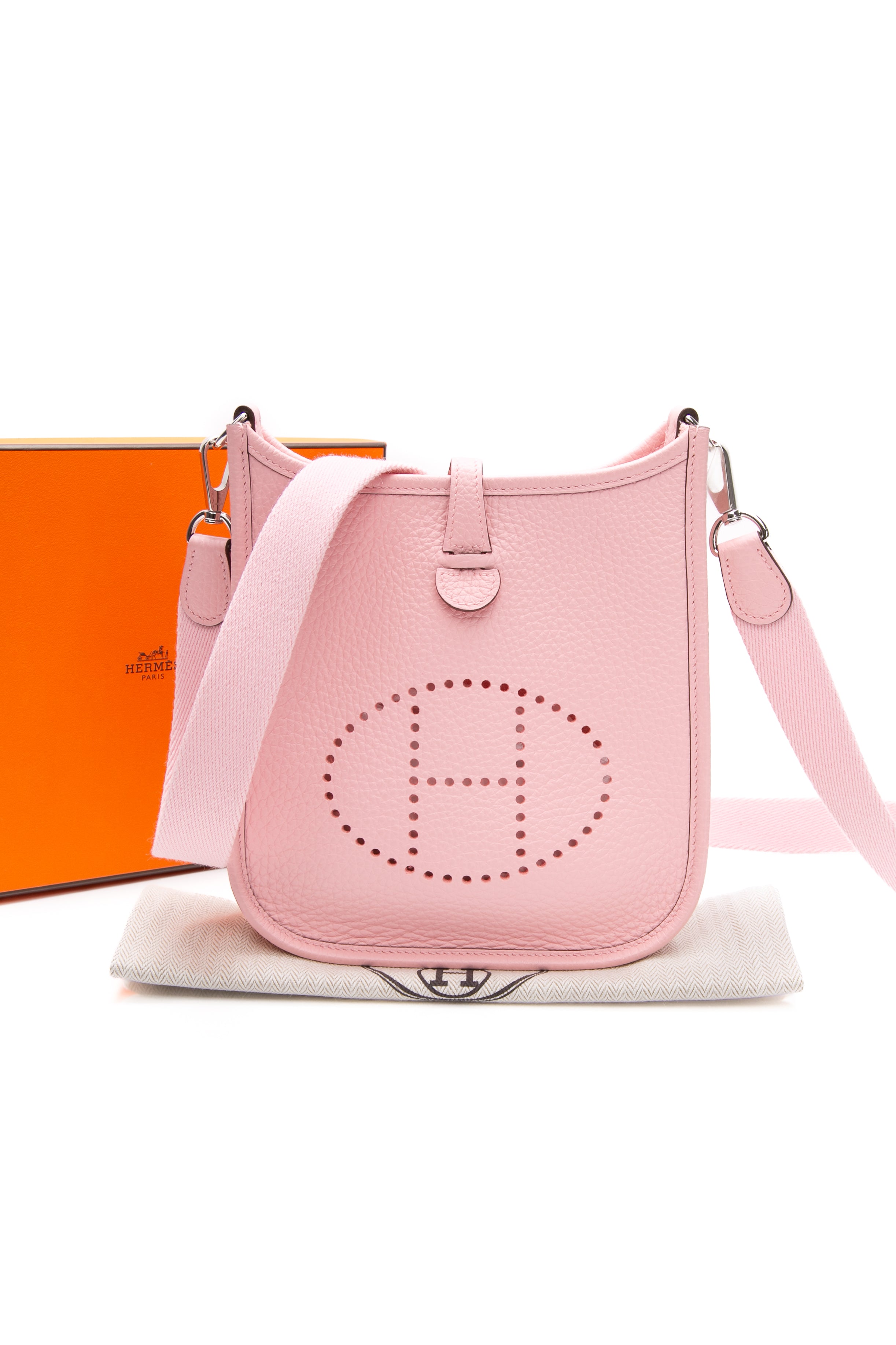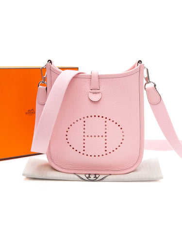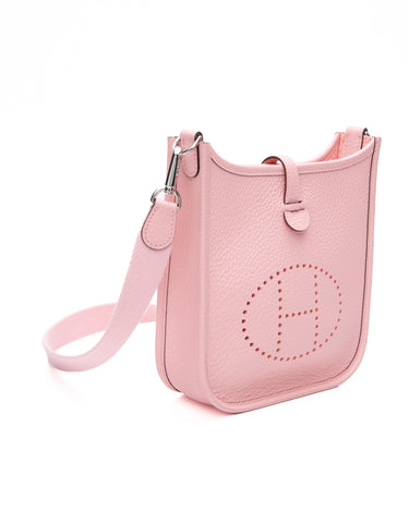 HERMES Rose Sakura Evelyne TPM Clemence Leather Palladium Hardware