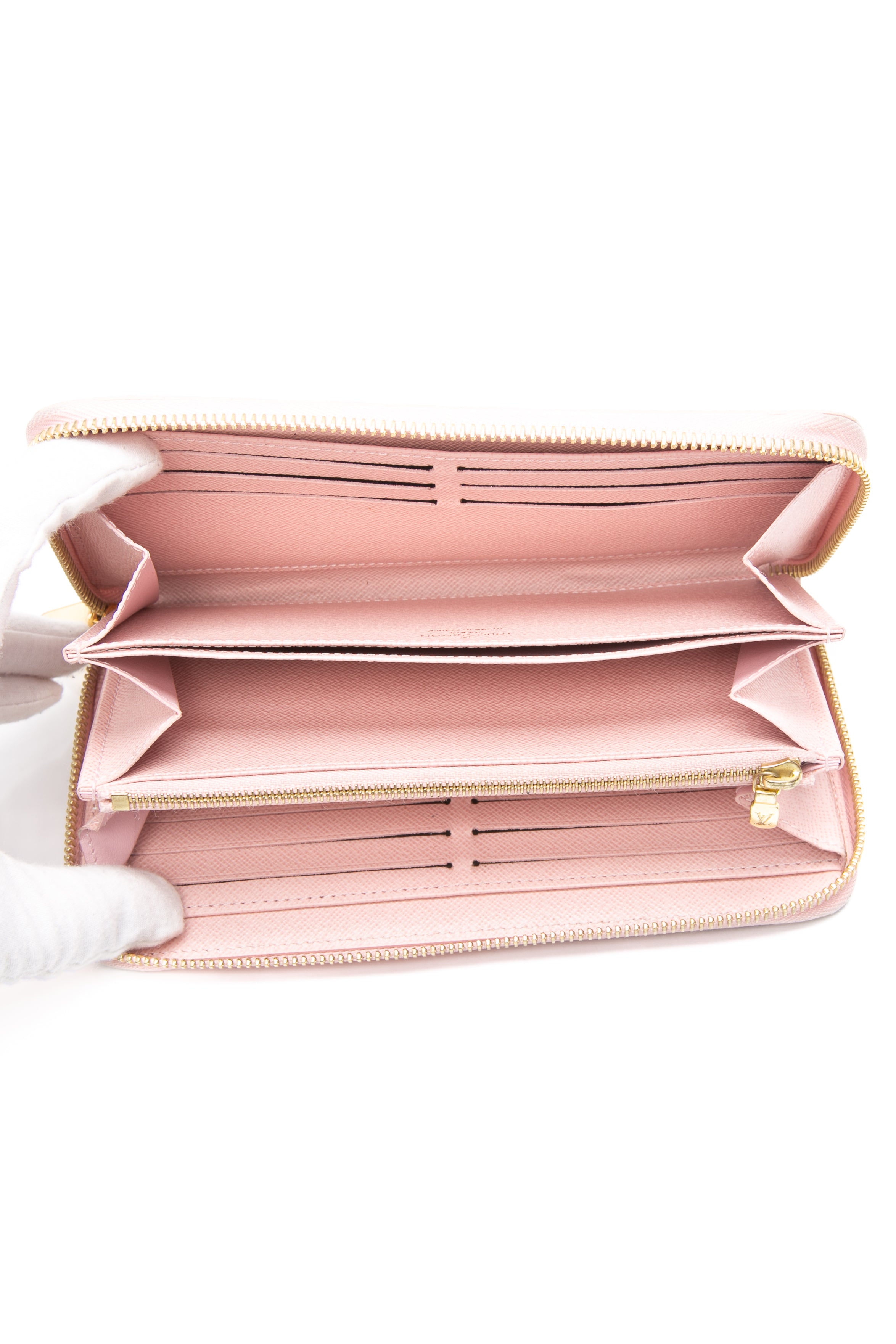 Damier Azur canvas gives a fresh look to Louis Vuitton's iconic Zippy wallet, which is famous for its secure, zip-around format. The wallet unzips to reveal a well-organized interior in grained cowhide leather with a variety of pockets, compartments and card slots. This smart design can also be carried as a clutch.