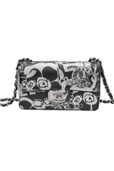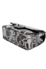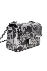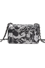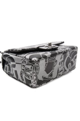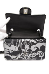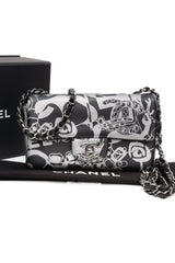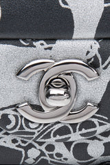 CHANEL 22C Black Silver Printed Lambskin Leather Rectangular Mini Flap Bag