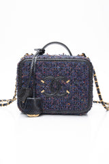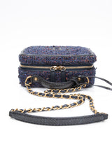 CHANEL Blue Tweed Quilted CC Filigree Python Medium