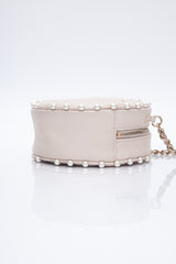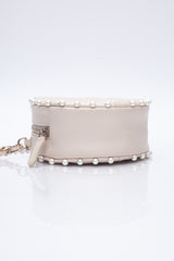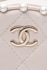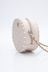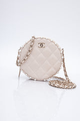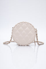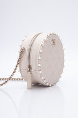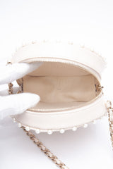 CHANEL Cream Calfskin Quilted Pearl Round Crossbody Bag