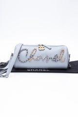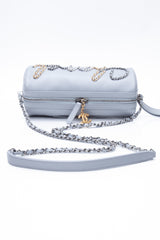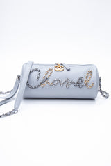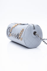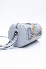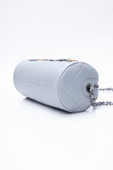 CHANEL Light Gray Calfskin Chain 20s Signature Bowling Crossbody Bag