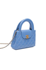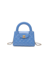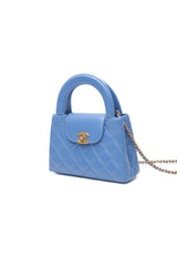 CHANEL 25C Blue Shiny Aged Calfskin Quilted Nano Kelly Shopper Bag