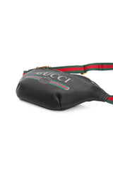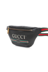 GUCCI Black Grained Calfskin Small Logo Belt Bag