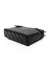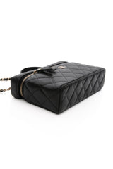 CHANEL 25K Black Caviar Quilted Top Handle Slim Vanity Case with Chain