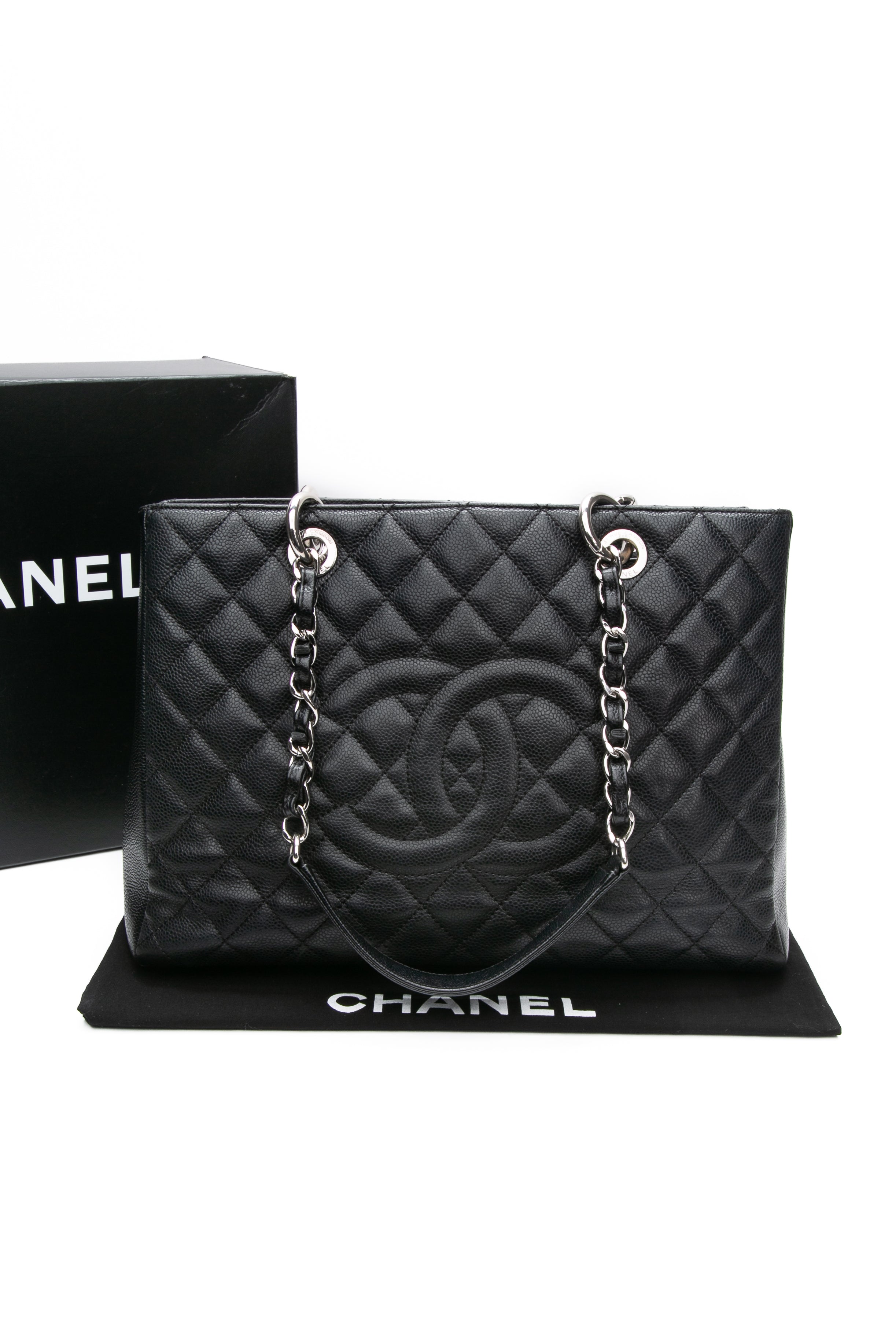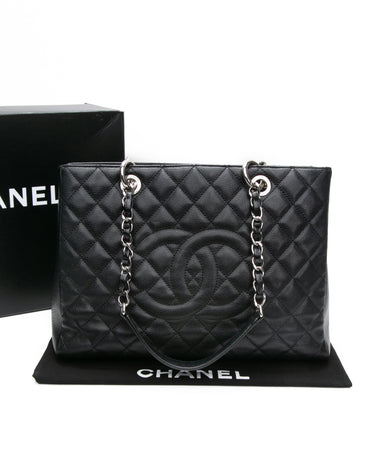 CHANEL Black Caviar Quilted Grand Shopping Tote GST