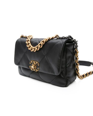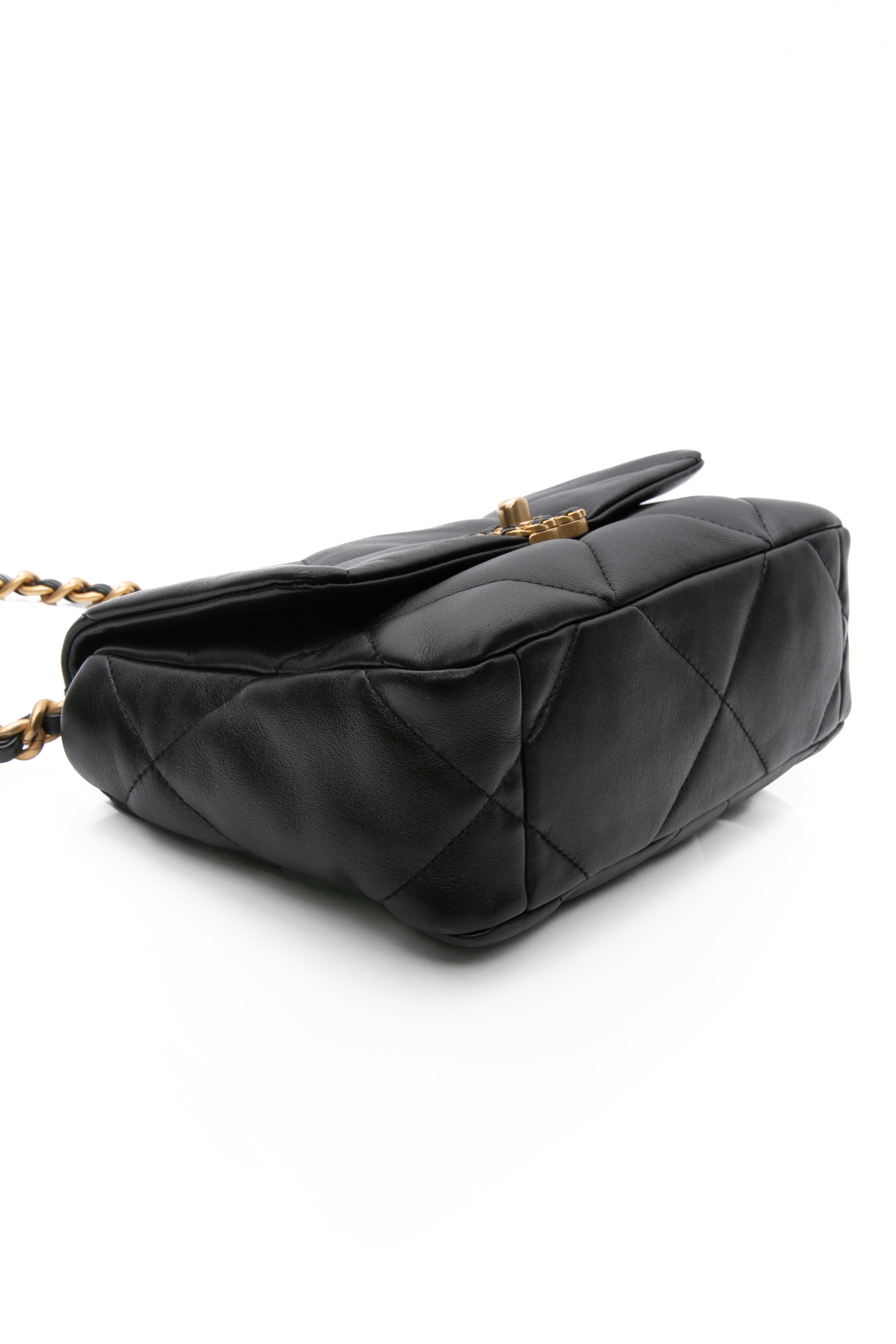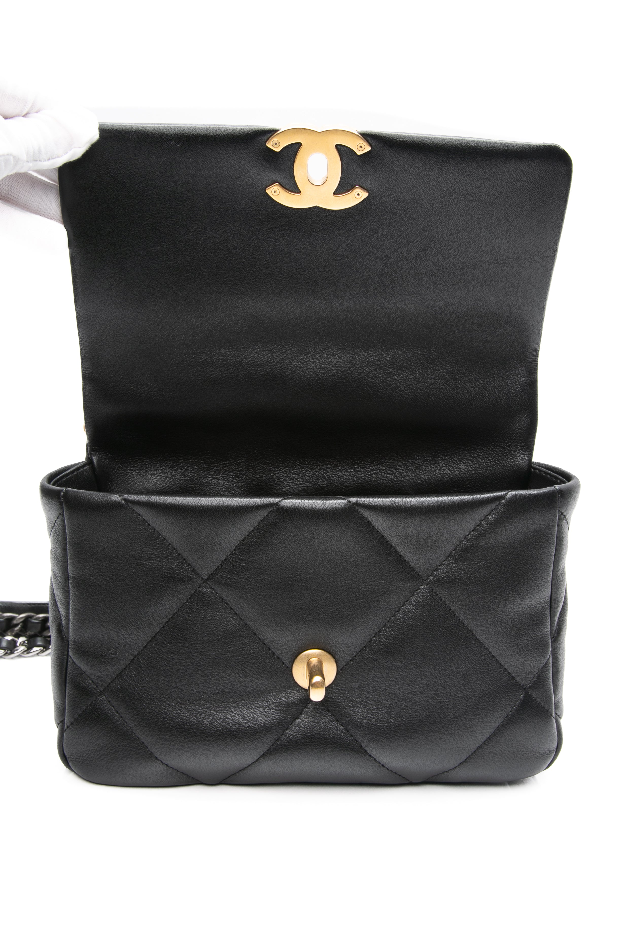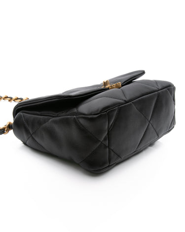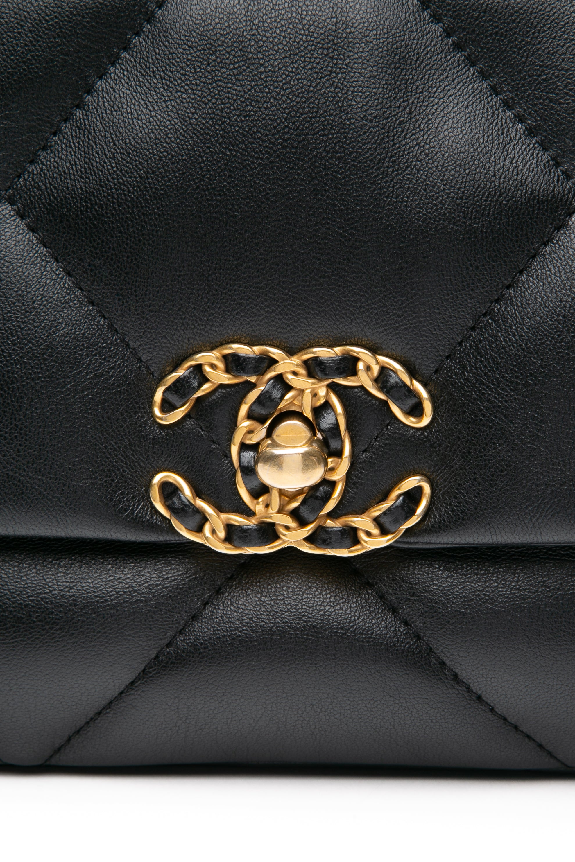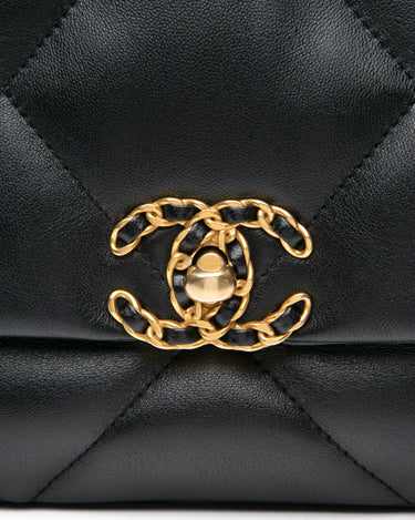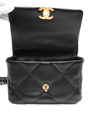 CHANEL Black Lambskin Quilted Chanel 19 Flap Bag