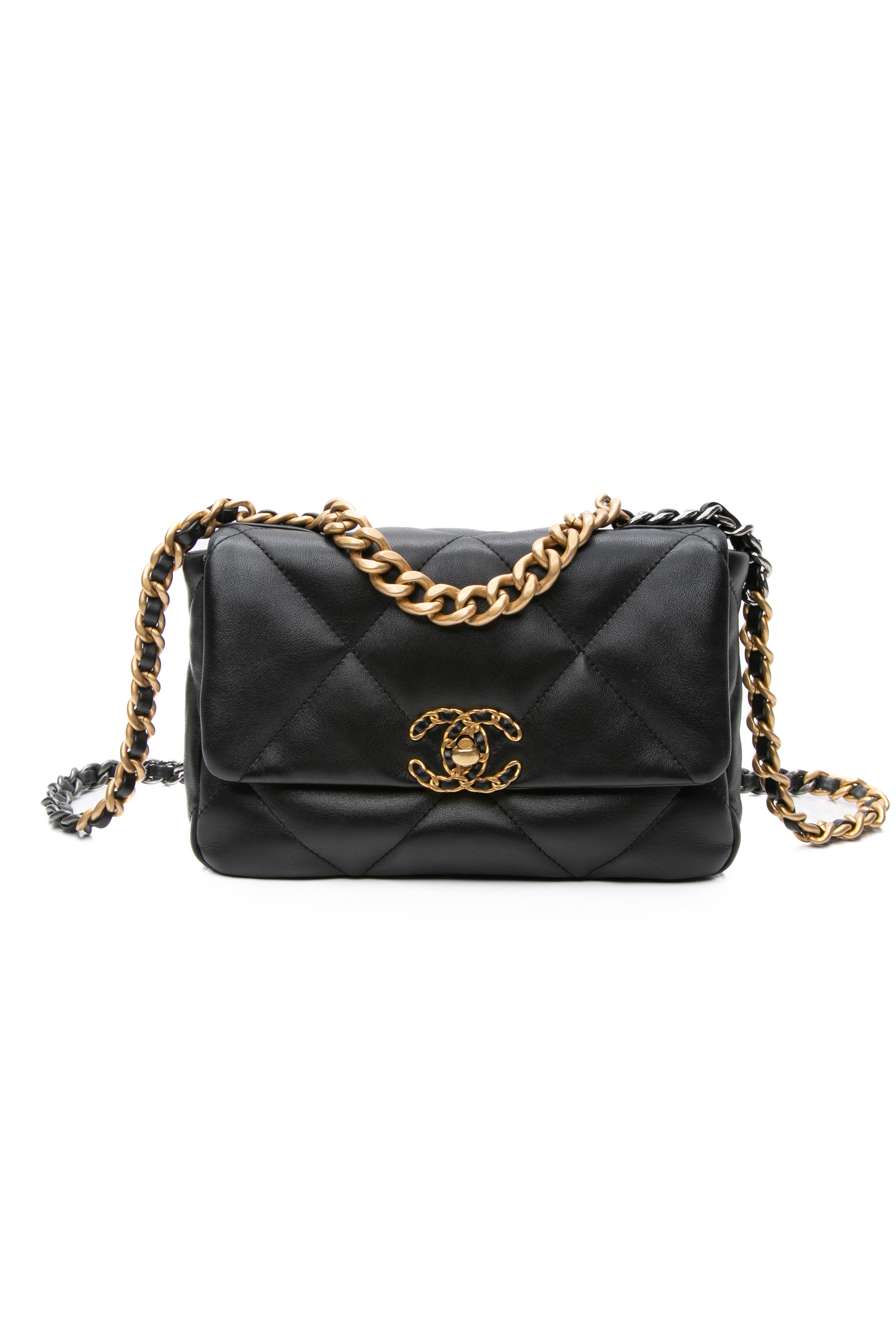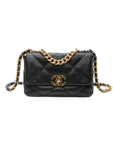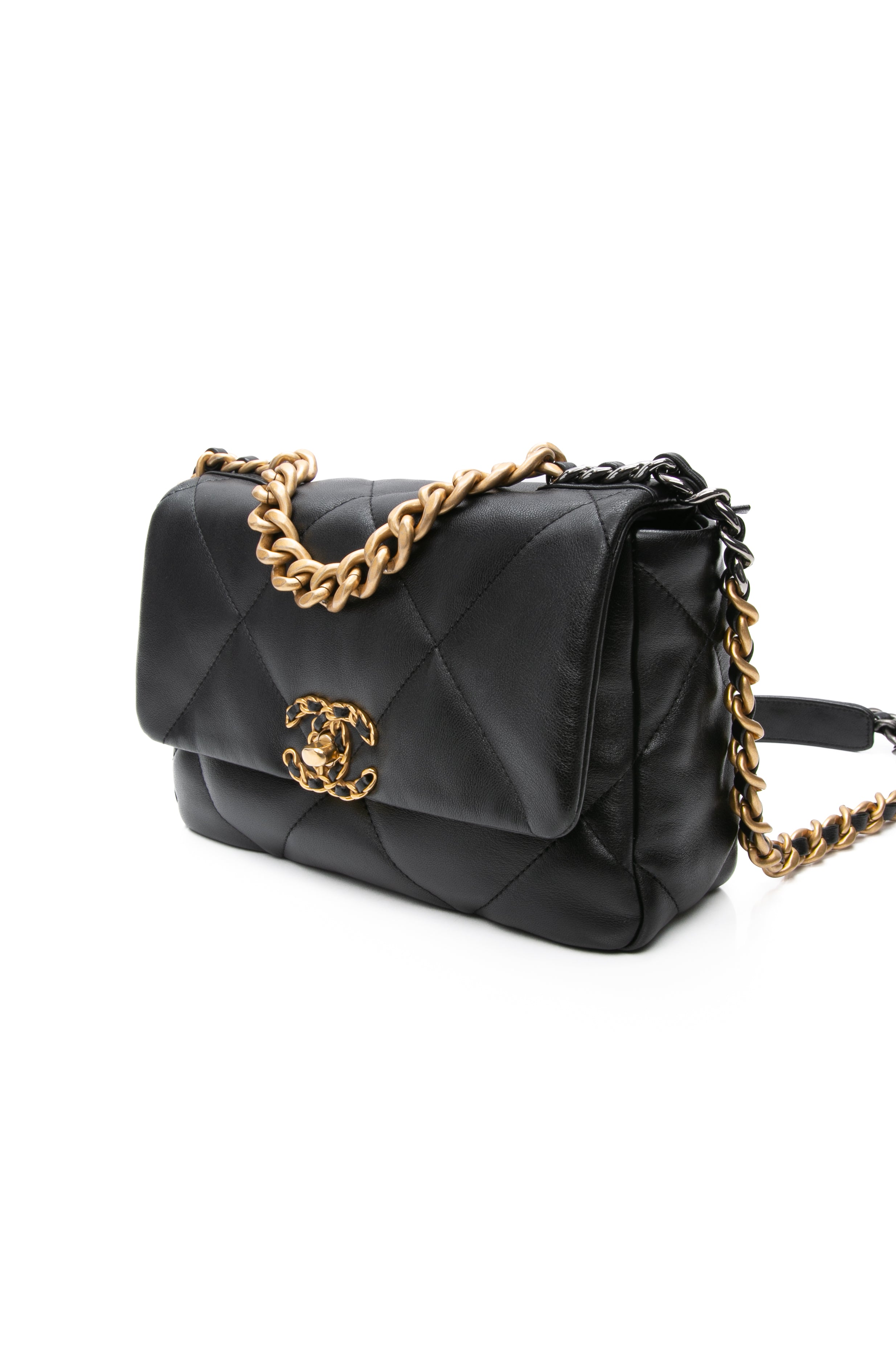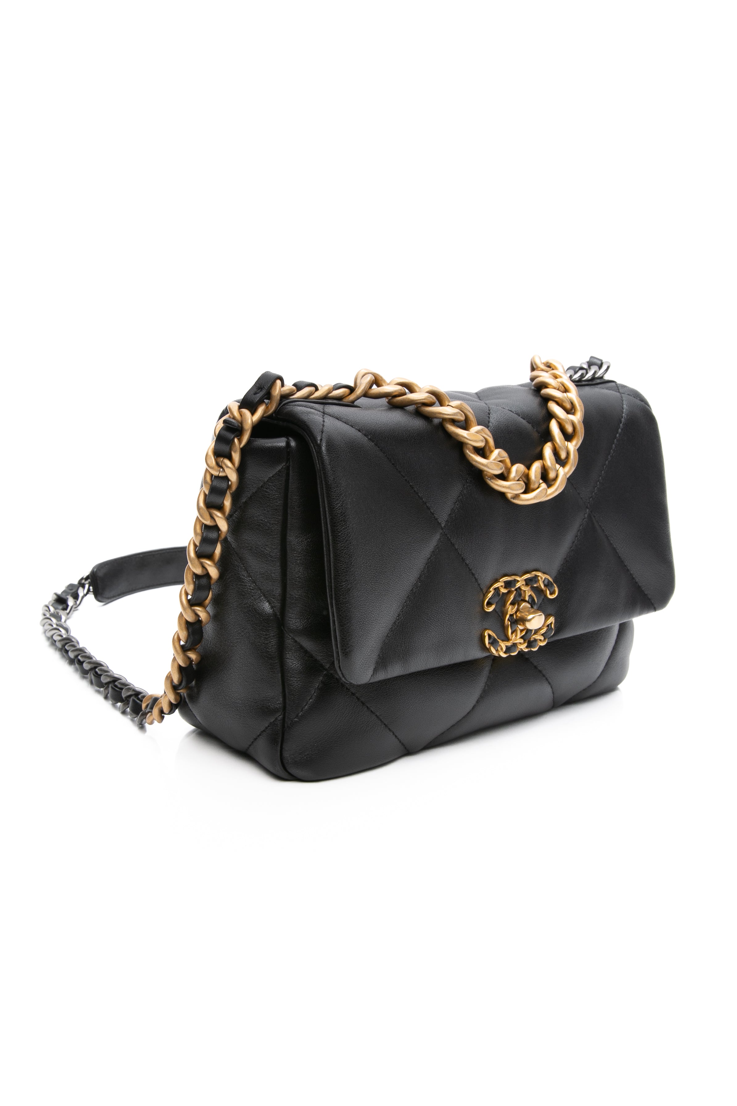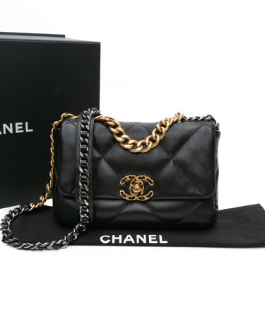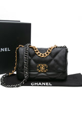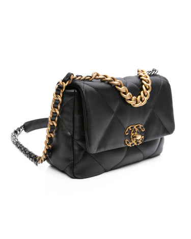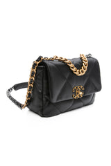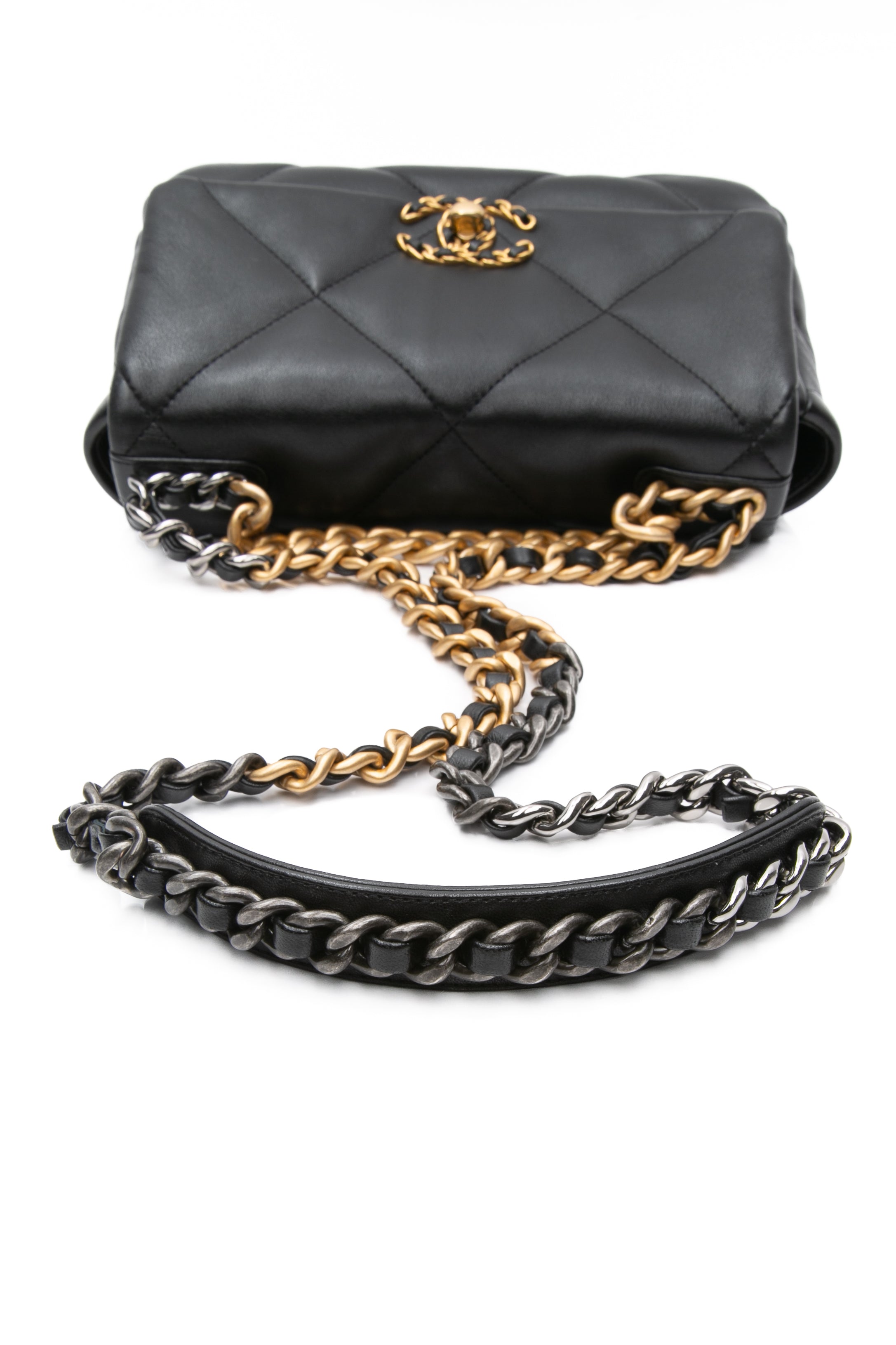 CHANEL Black Lambskin Quilted Chanel 19 Flap Bag