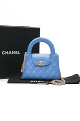 CHANEL 25C Blue Shiny Aged Calfskin Quilted Nano Kelly Shopper Bag