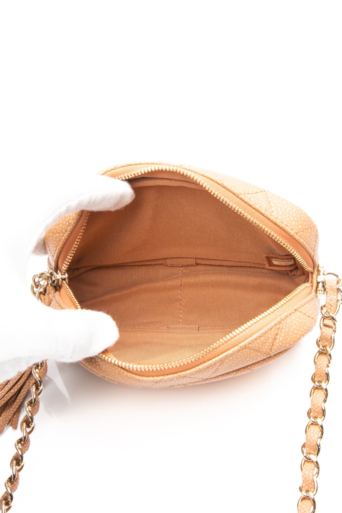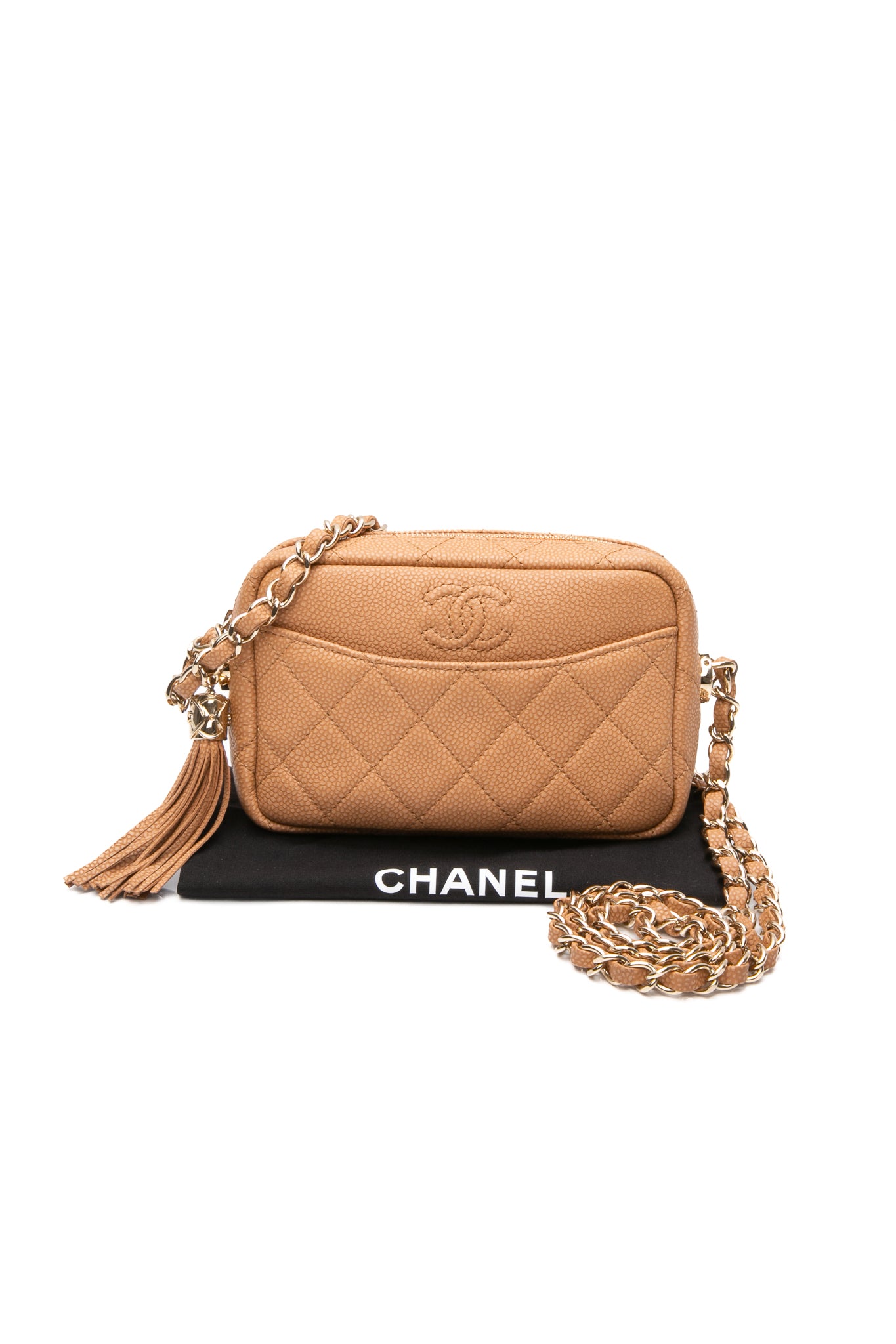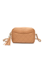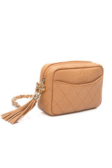 CHANEL Caramel Caviar Quilted Mini Coco Tassel Camera Bag