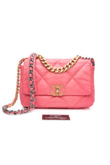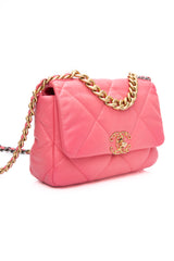 CHANEL Pink Goatskin Quilted Chanel 19 Flap Bag