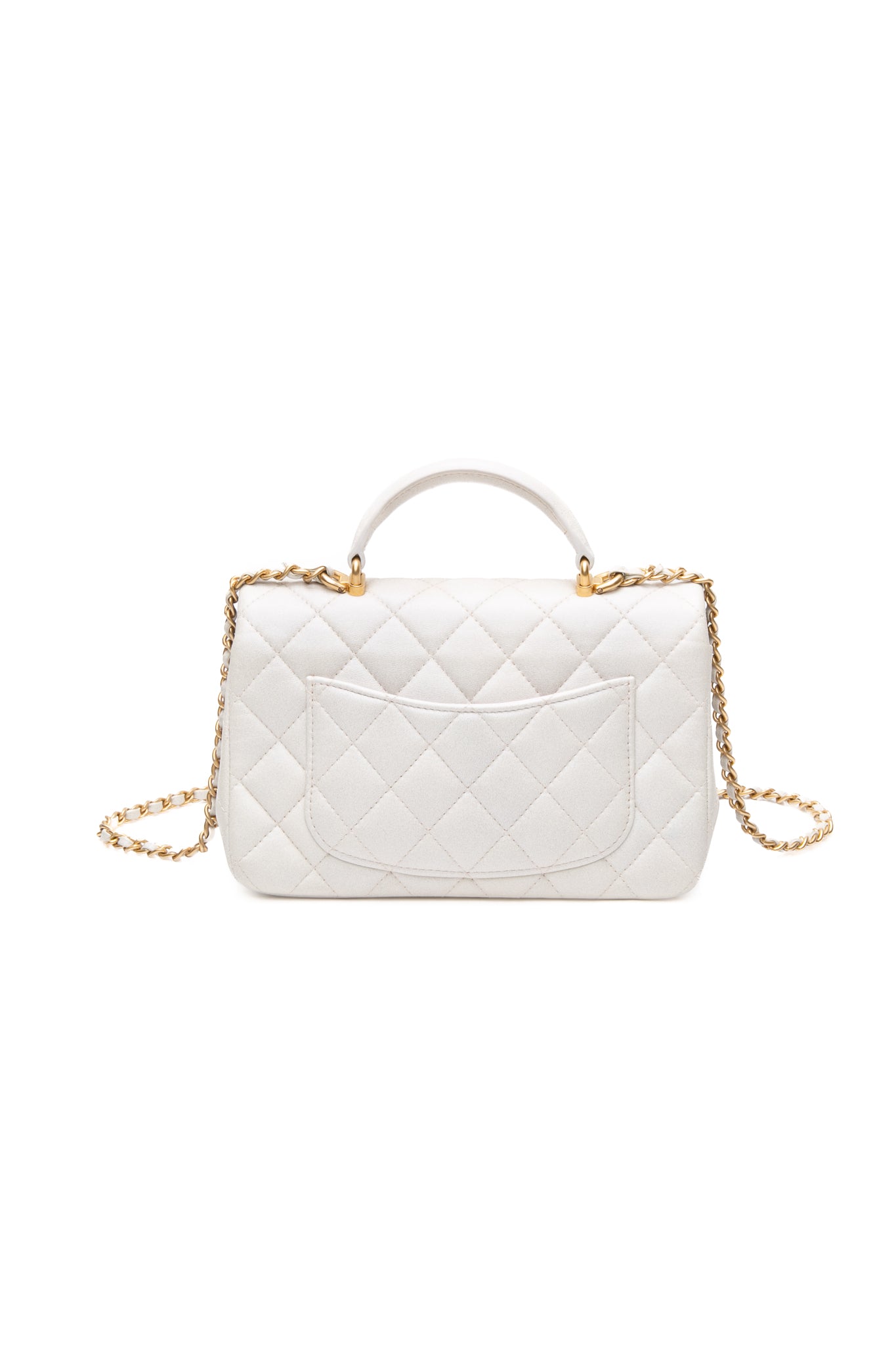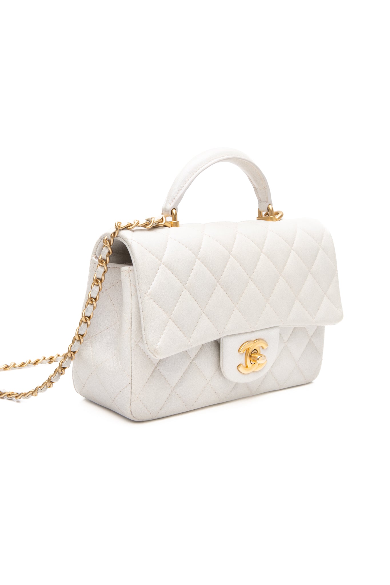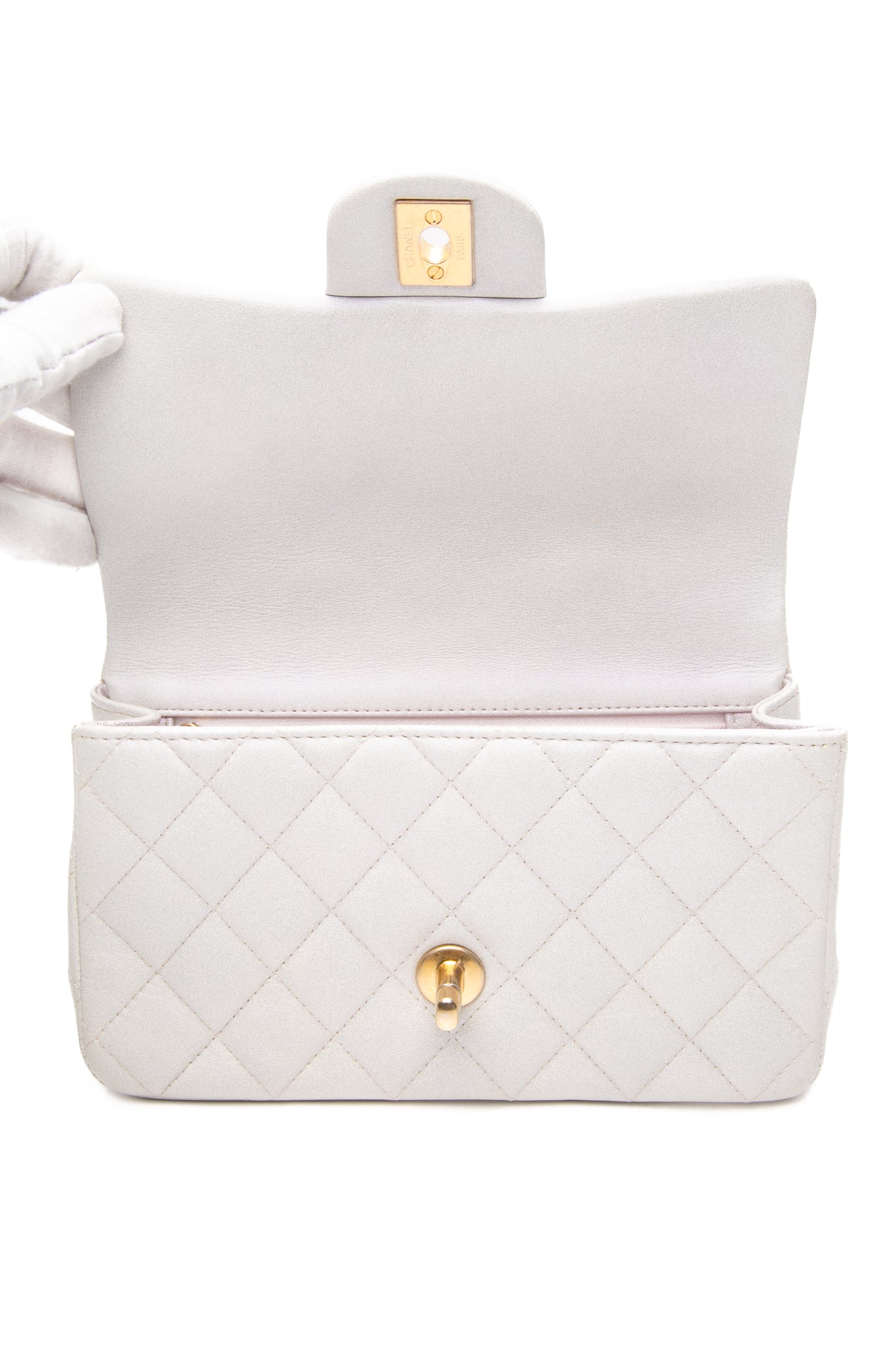 CHANEL White Iridescent Lambskin Quilted Mini Rectangular Top Handle Flap Bag