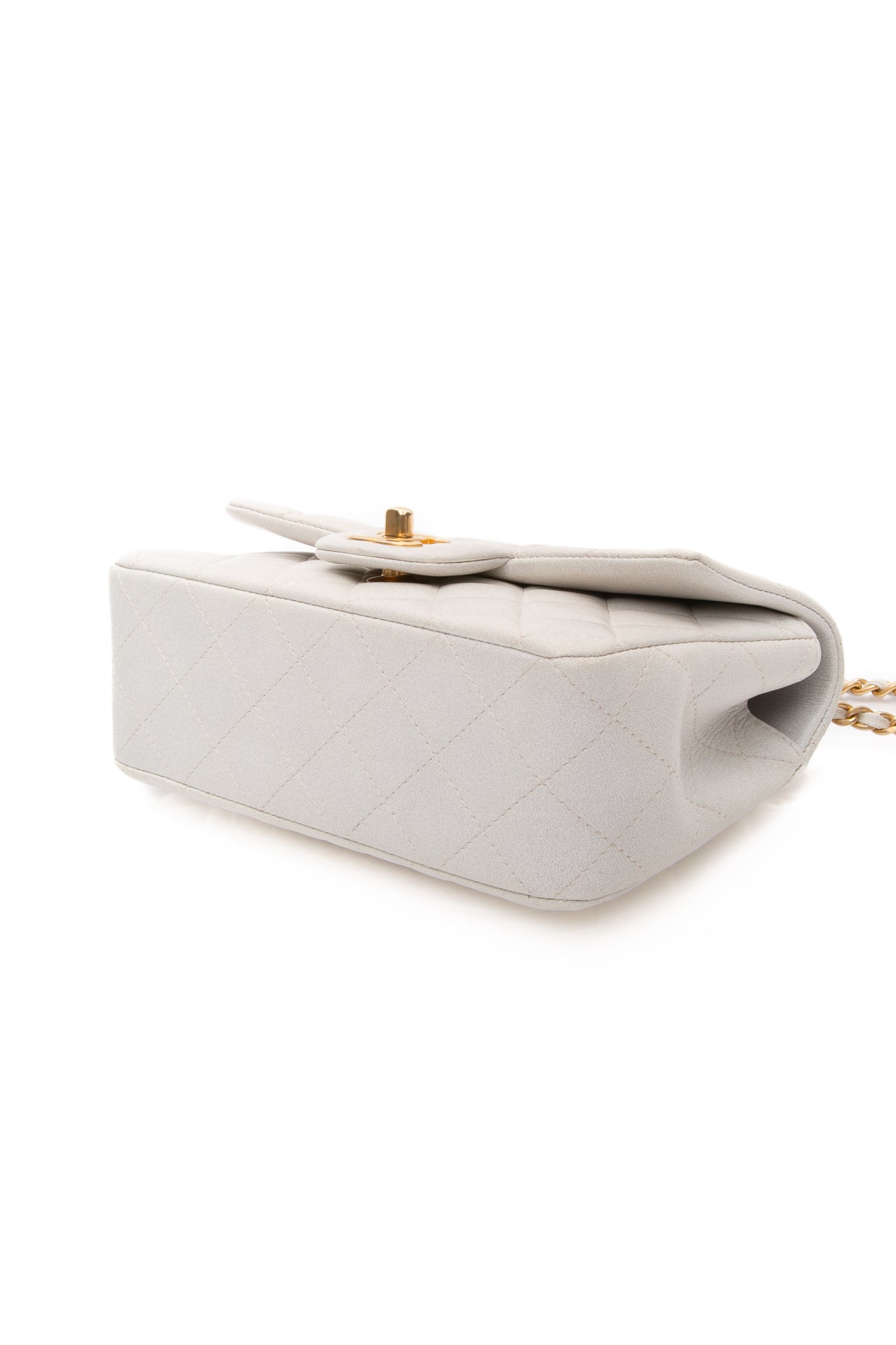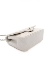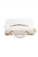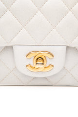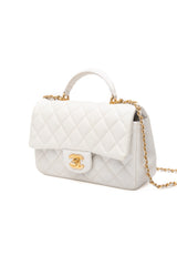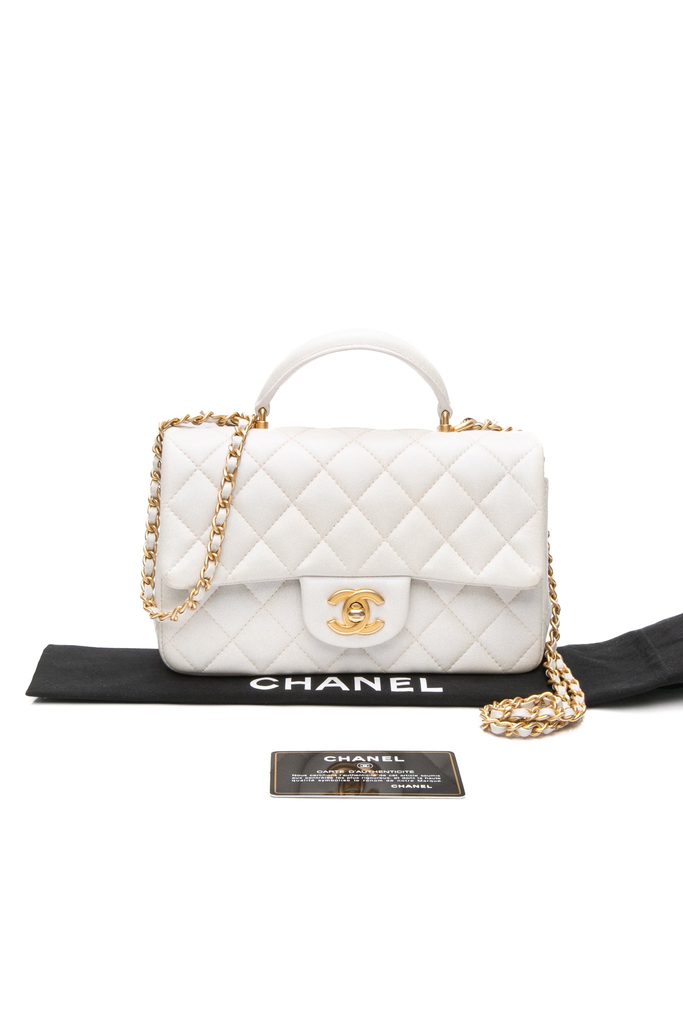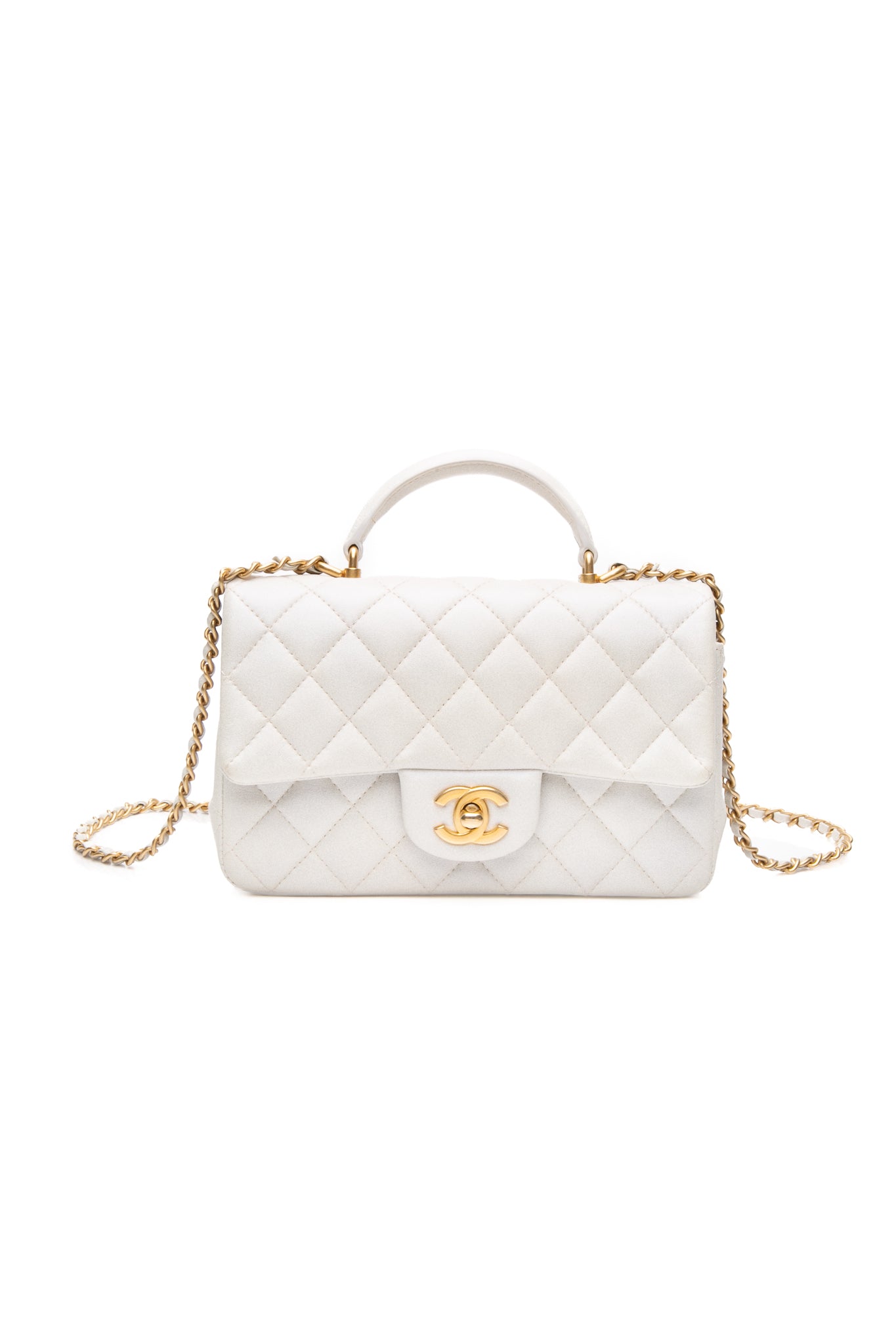CHANEL White Iridescent Lambskin Quilted Mini Rectangular Top Handle Flap Bag