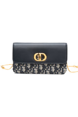 The Miss Caro pouch with chain is practical and timeless. It features a flap with an antique gold-finish metal CD twist clasp inspired by the seal of a Christian Dior perfume bottle, opening to reveal a compartment that will accommodate all the essentials. The chain strap allows it to be carried comfortably by hand, worn over the shoulder or crossbody as an ideal daily pouch.