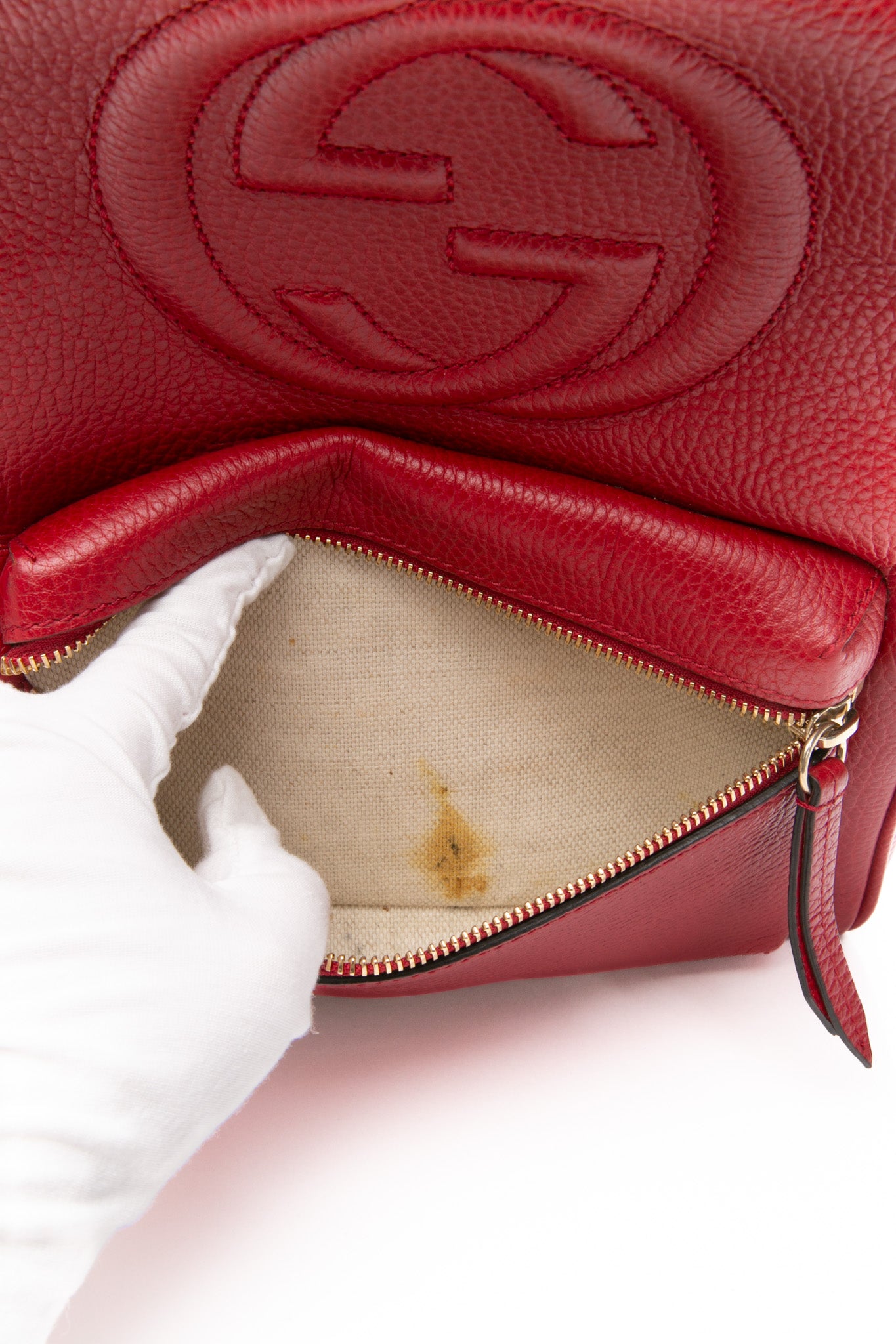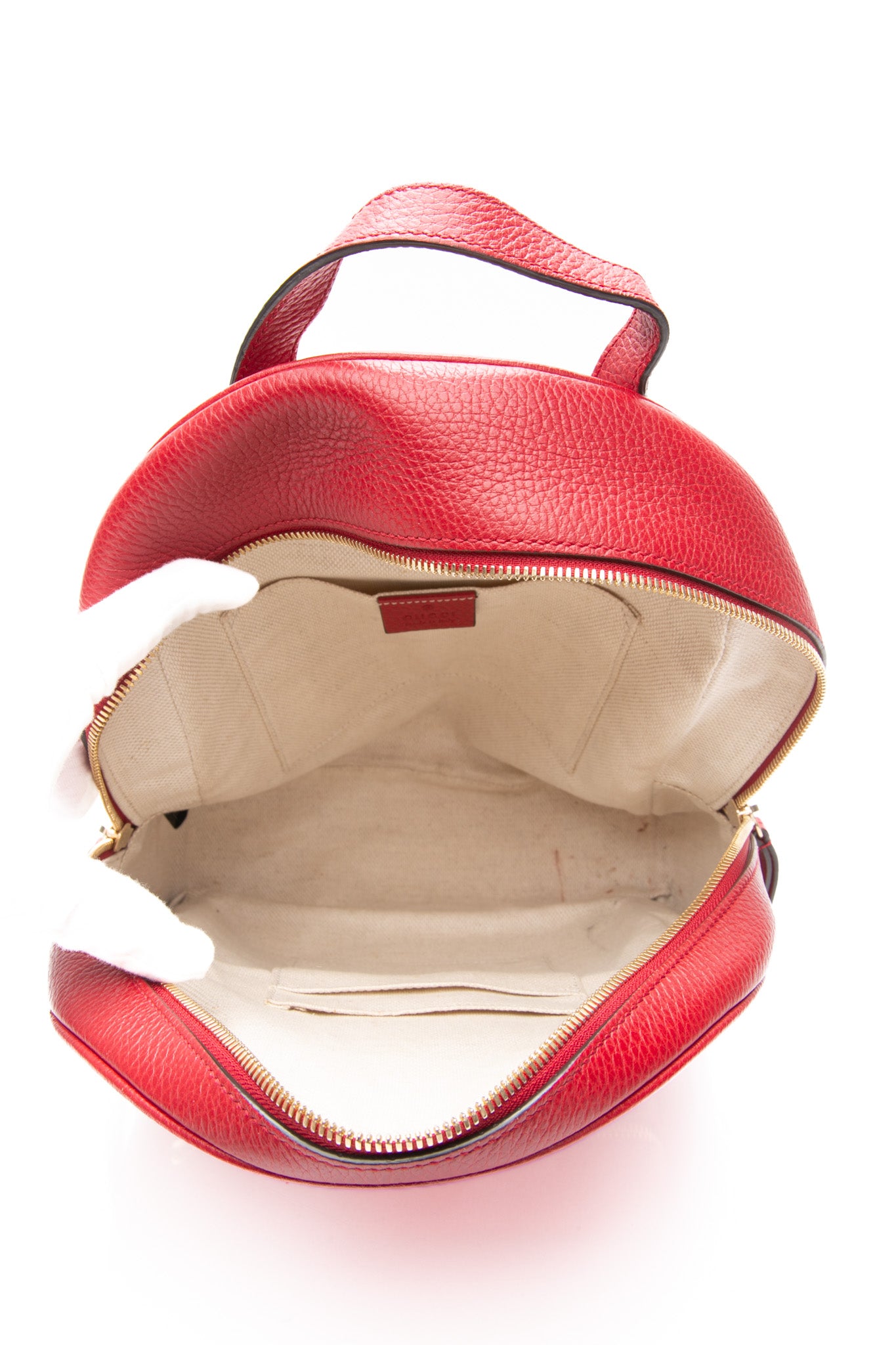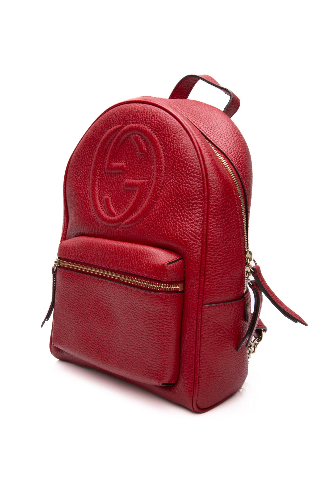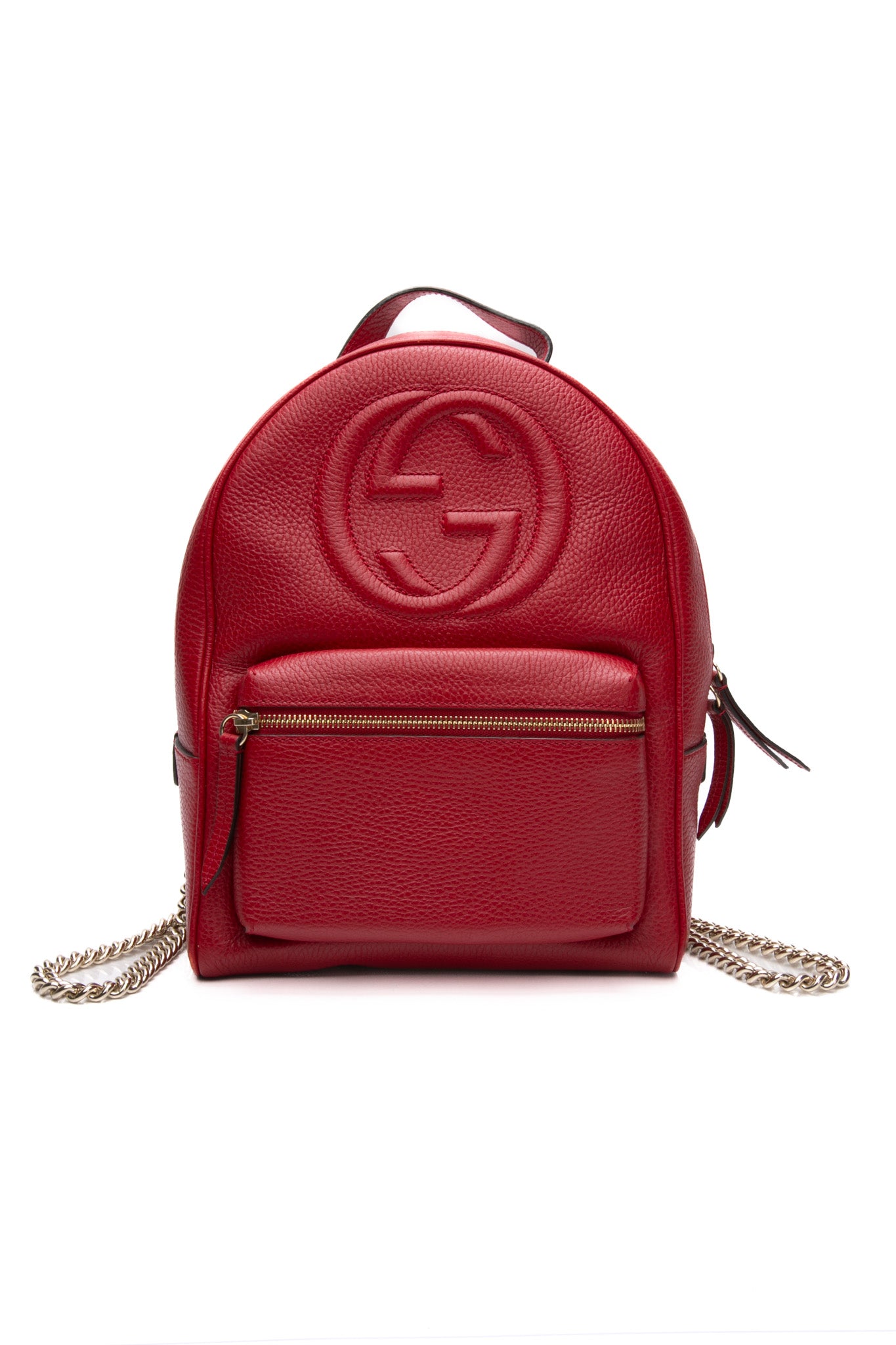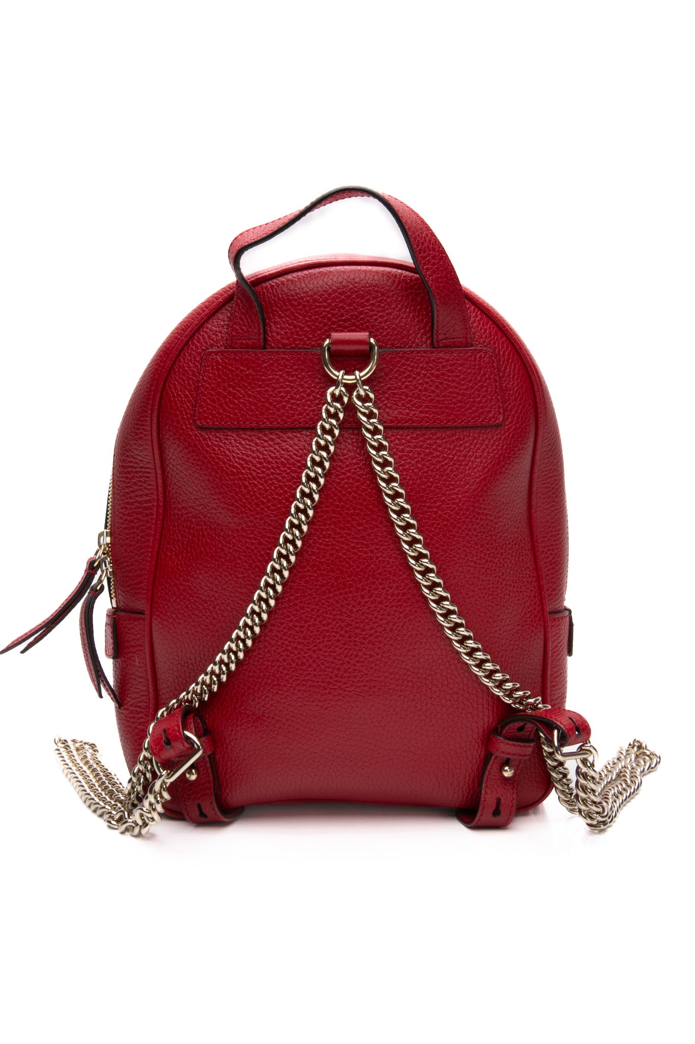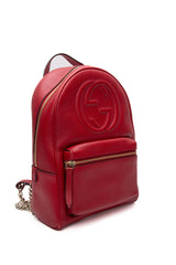 GUCCI Red Hibiscus Pebbled Calfskin Soho Chain Backpack