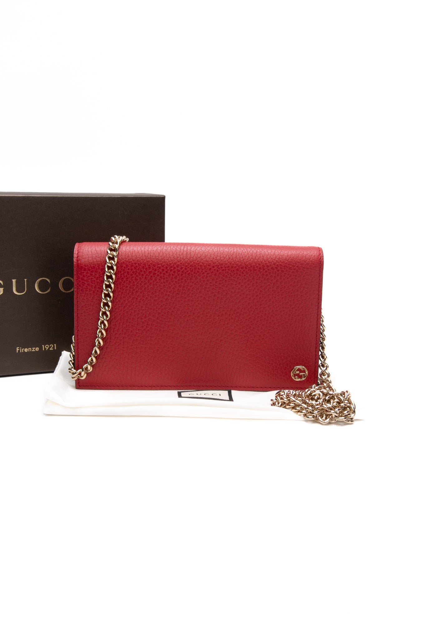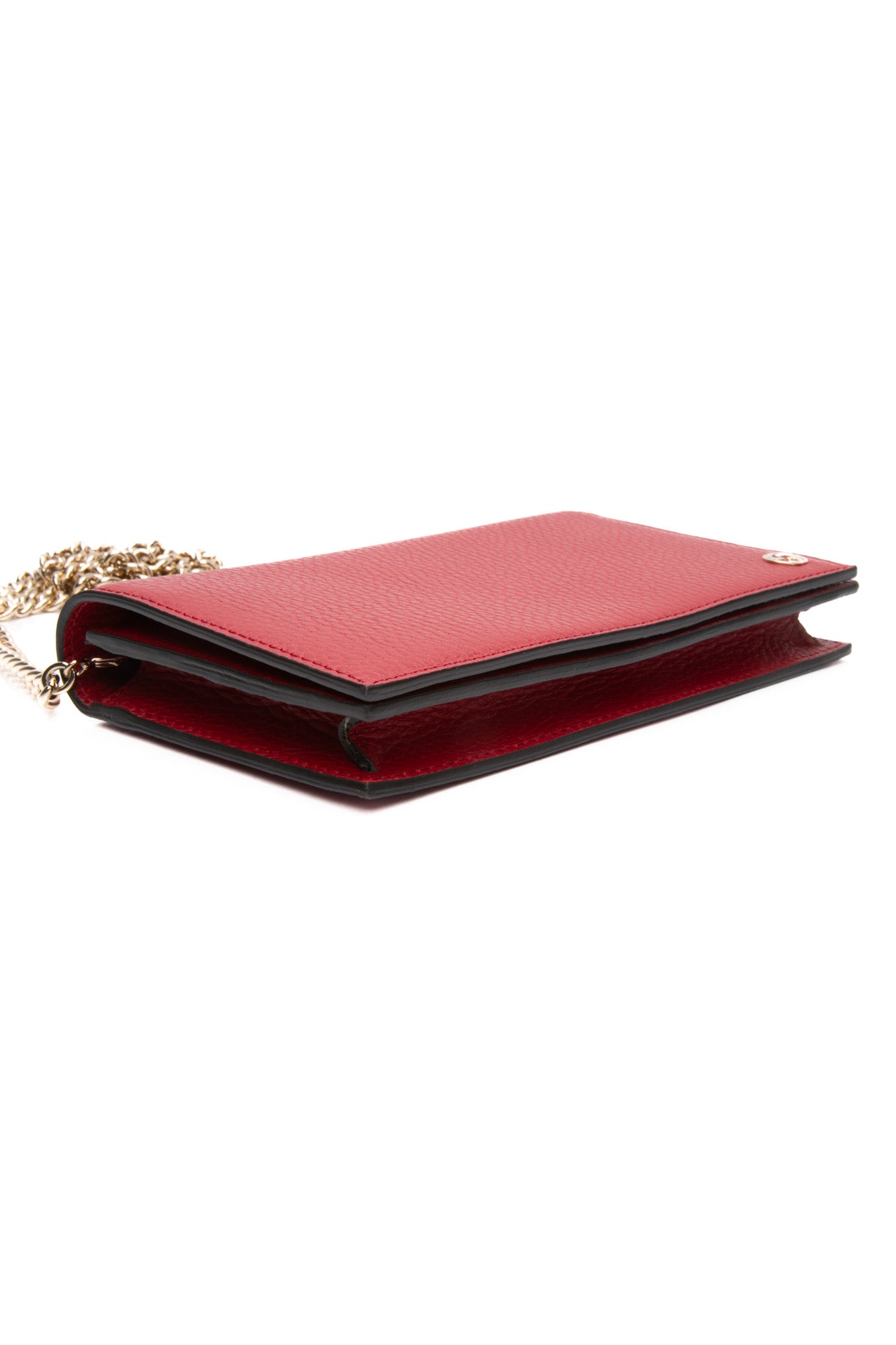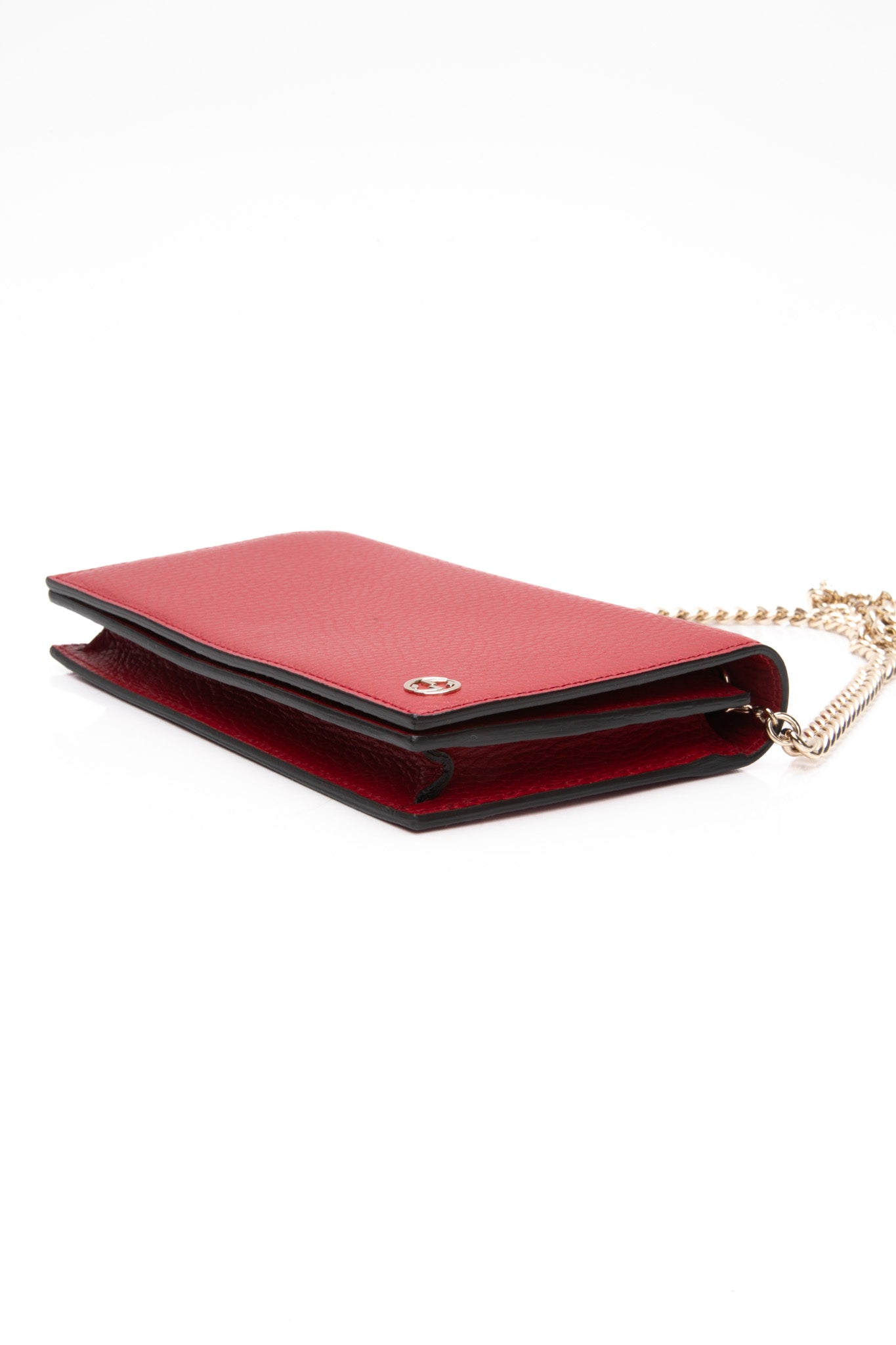 GUCCI Red Interlocking G Leather Wallet on Chain