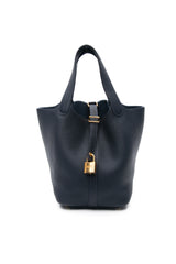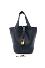 HERMES Bleu Nuit Clemence Picotin 18 PM Gold Hardware