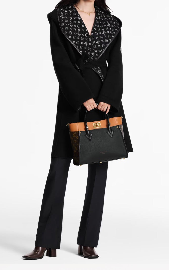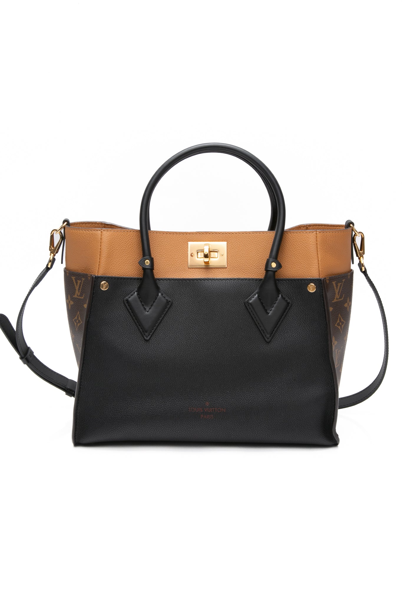The On My Side MM tote bag is fashioned from an elegant combination of small-grained calf leather and emblematic Monogram canvas. The roomy interior can easily hold everything needed for a day at the office while the adjustable strap makes for practical cross-body carry.