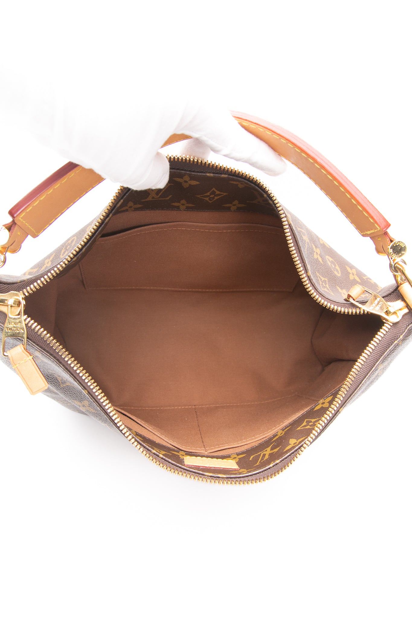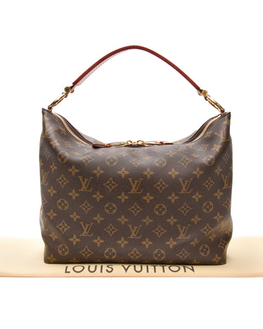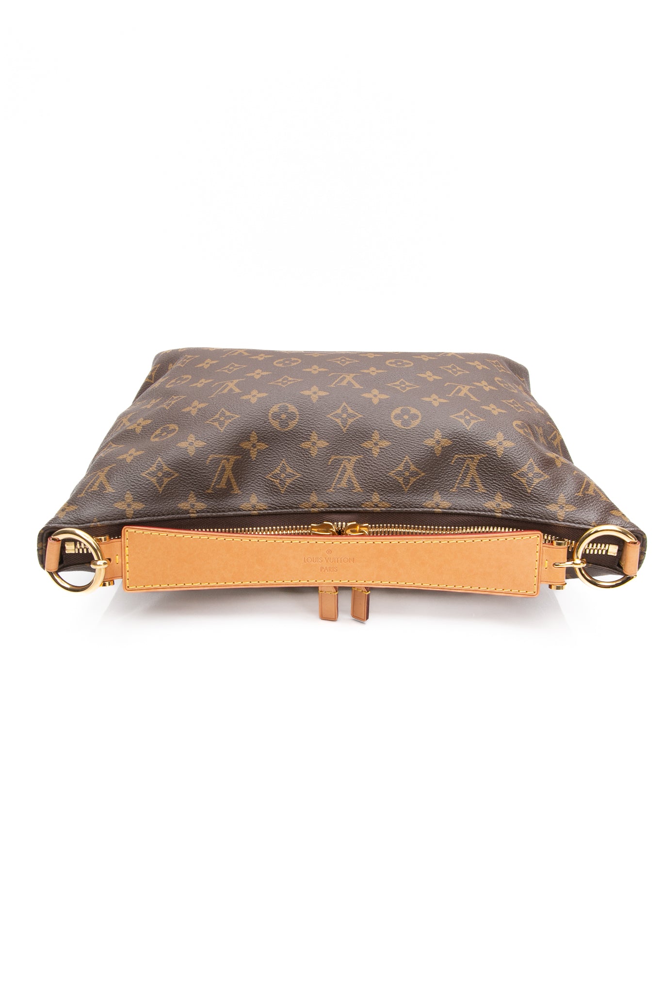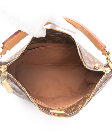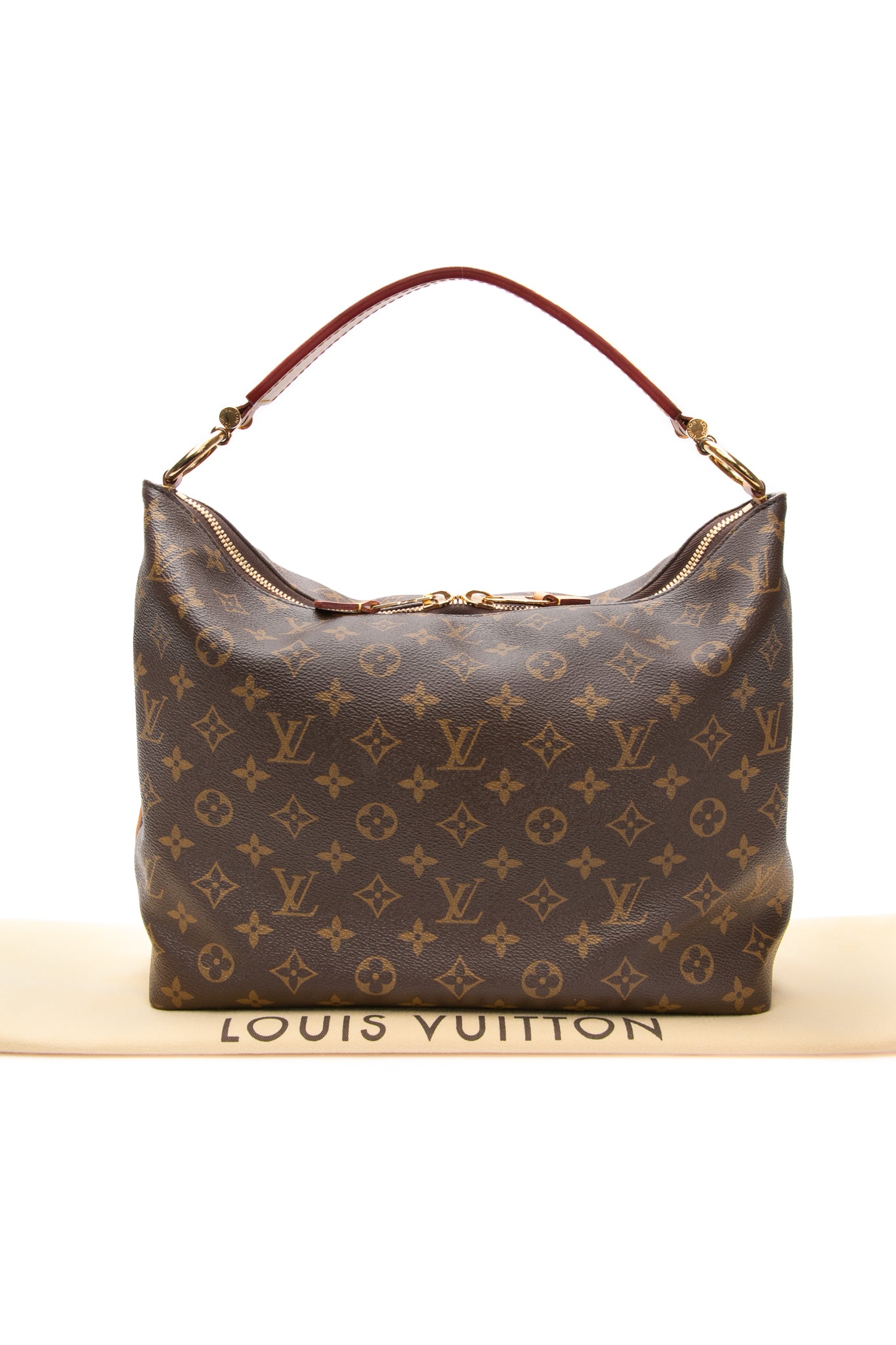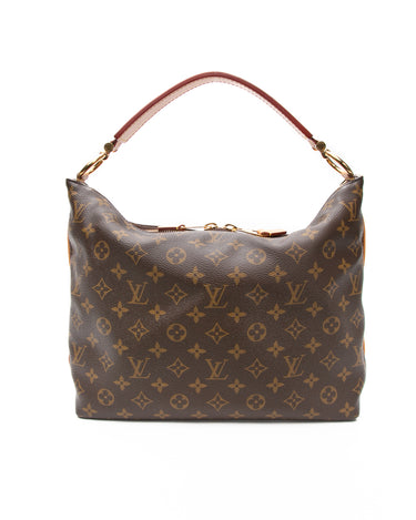 This chic hobo is finely crafted of classic Louis Vuitton monogram coated canvas. This shoulder bag features a thick vachetta leather shoulder strap with polished brass round links attached on each end by vachetta loops. The top zips open to a cocoa brown fabric interior with patch pockets.