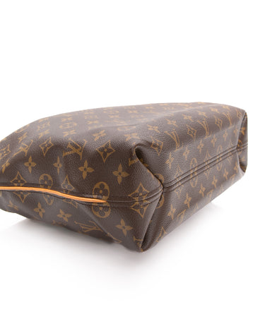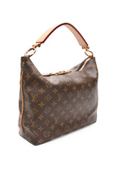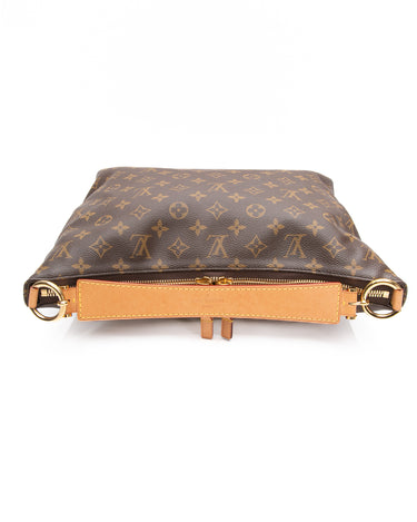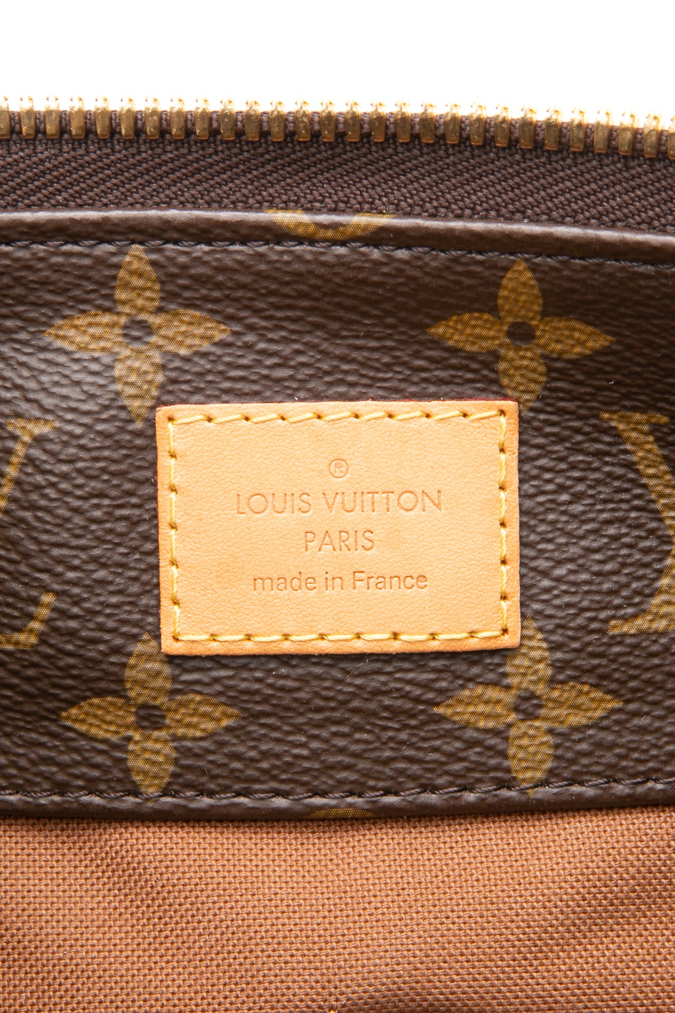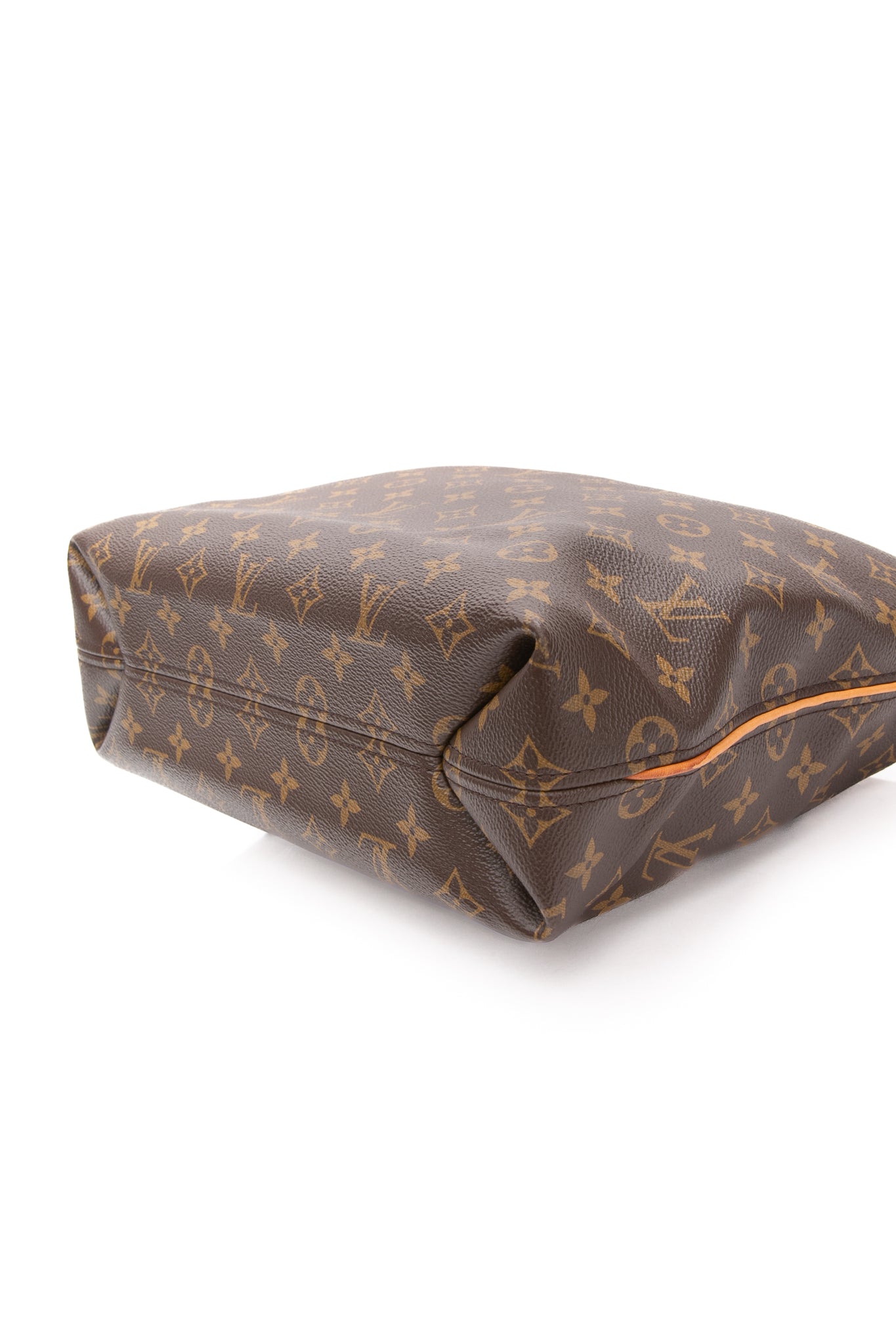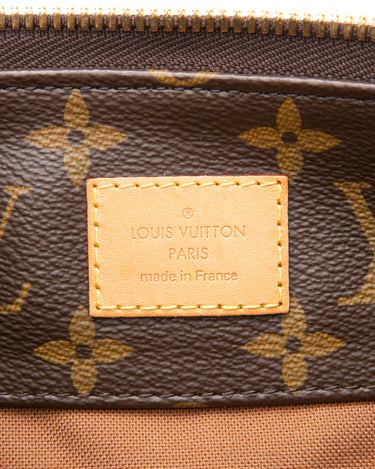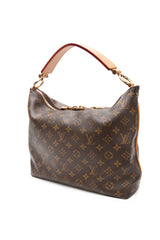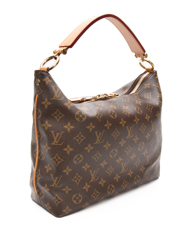 This chic hobo is finely crafted of classic Louis Vuitton monogram coated canvas. This shoulder bag features a thick vachetta leather shoulder strap with polished brass round links attached on each end by vachetta loops. The top zips open to a cocoa brown fabric interior with patch pockets.