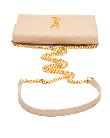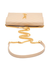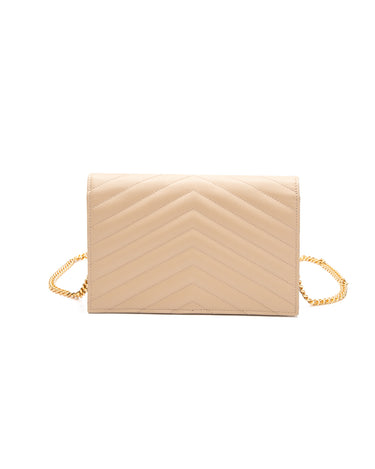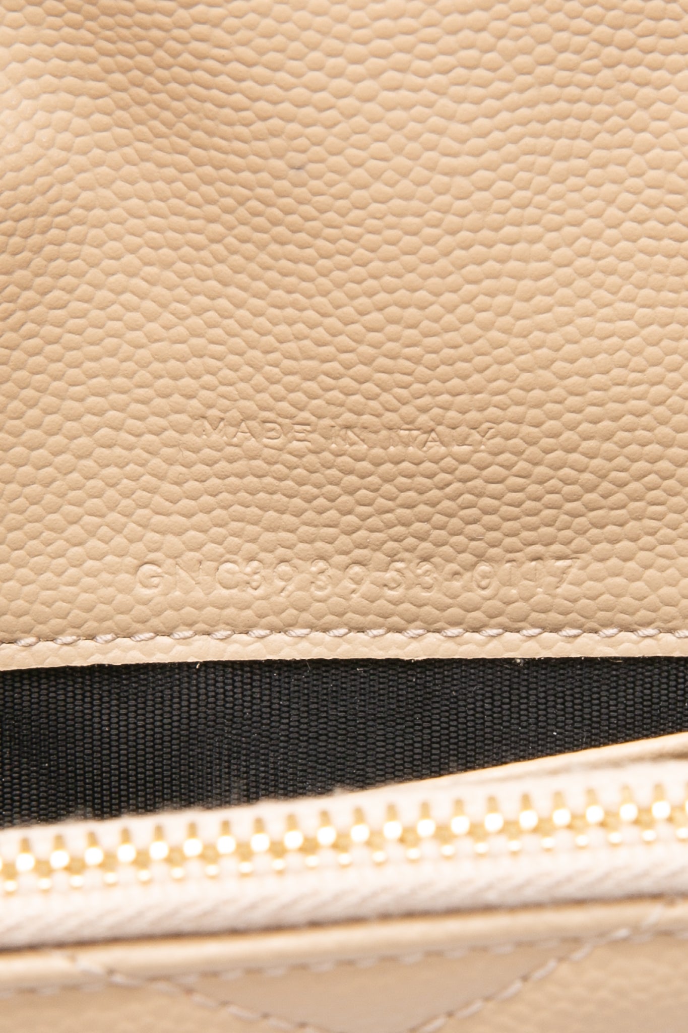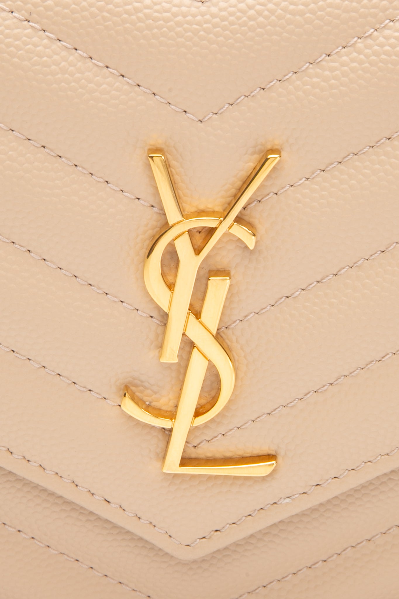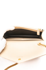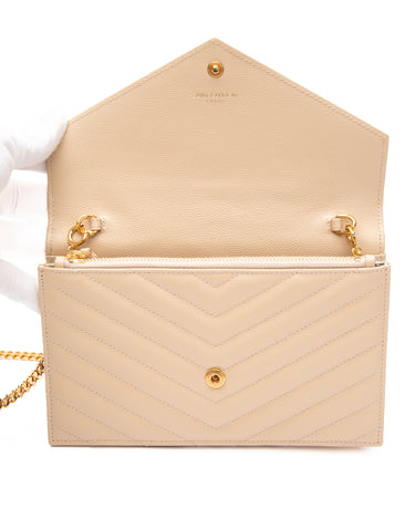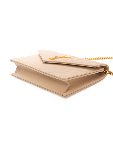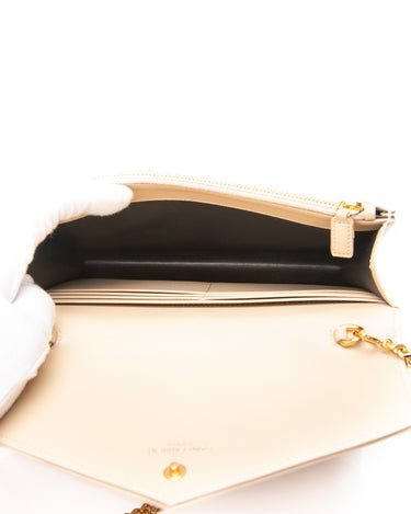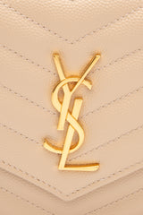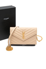 SAINT LAURENT Dark Beige Cassandre Envelope Chain Wallet in Grain de Poudre Leather