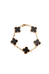 VAN CLEEF & ARPELS Vintage Alhambra 5 Motifs 18k Yellow Gold Black Onyx Bracelet