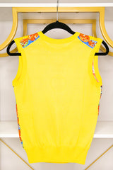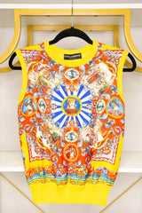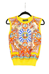 DOLCE & GABBANA Caretto Knitted Sleeveless Silk Yellow Printed Sweater Size 38 (Small)