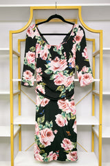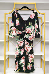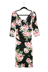 DOLCE & GABBANA Rose Print Silk Draped Shift Dress 42