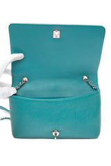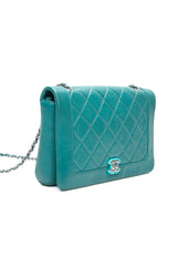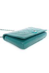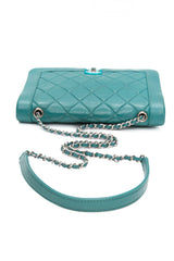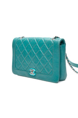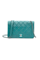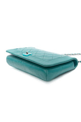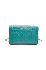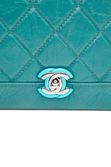 CHANEL Bi Vintage Acqua Blue Quilted Crumpled Leather Full Flap Crossbody Bag