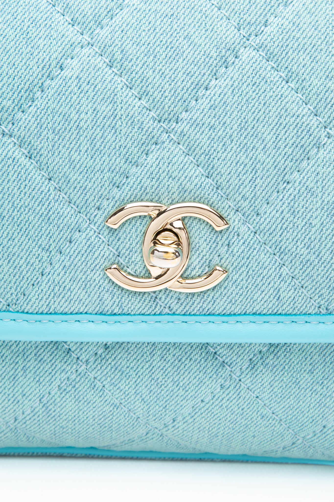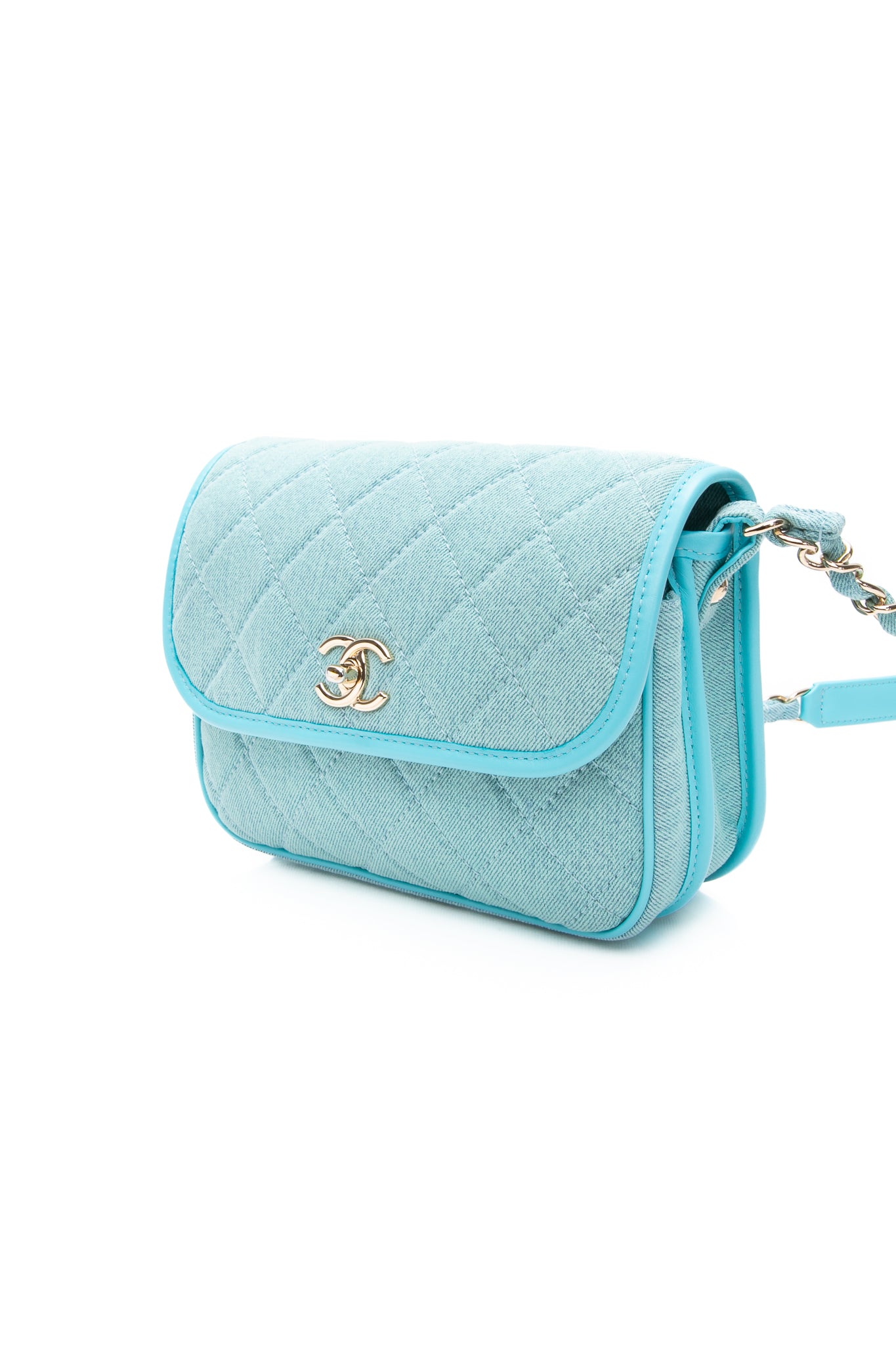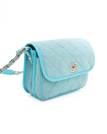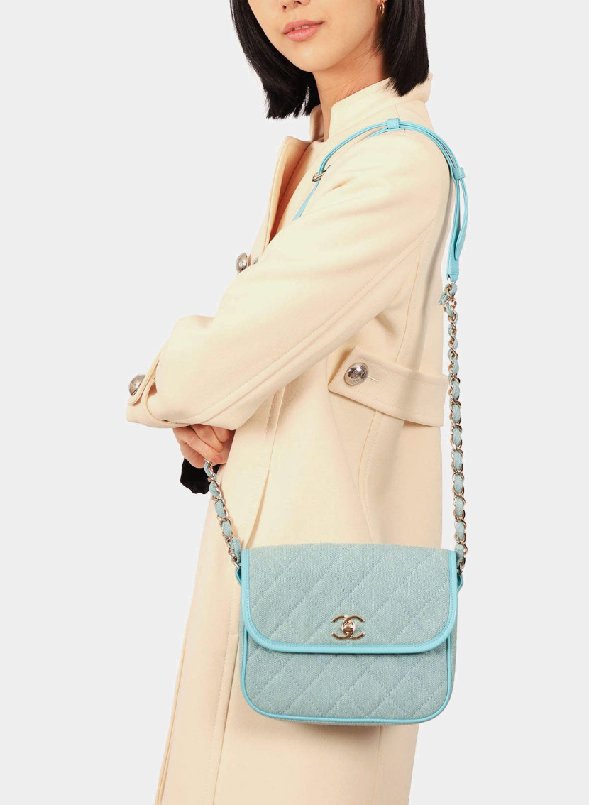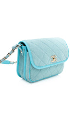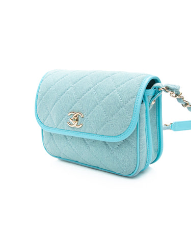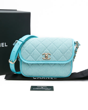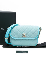 CHANEL Blue Denim CC Quilted Small Messenger Flap Crossbody Bag
