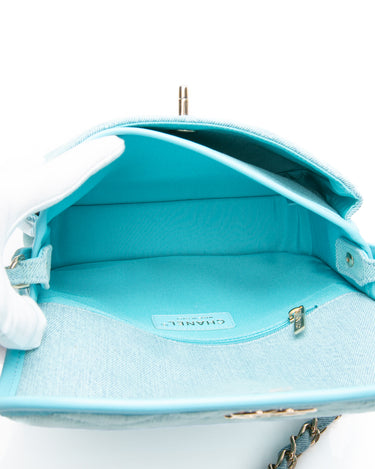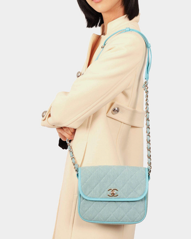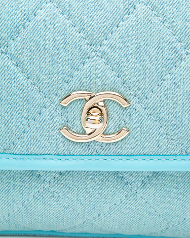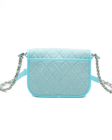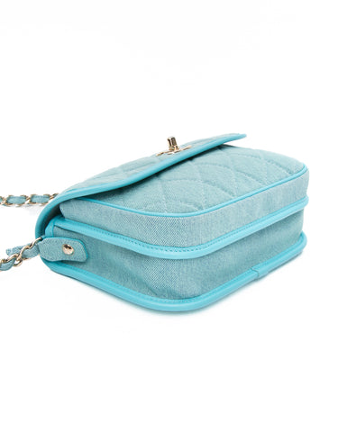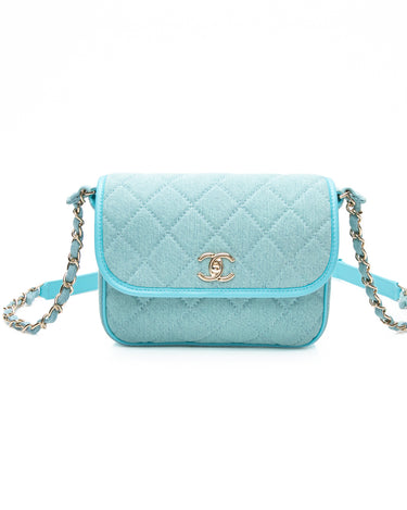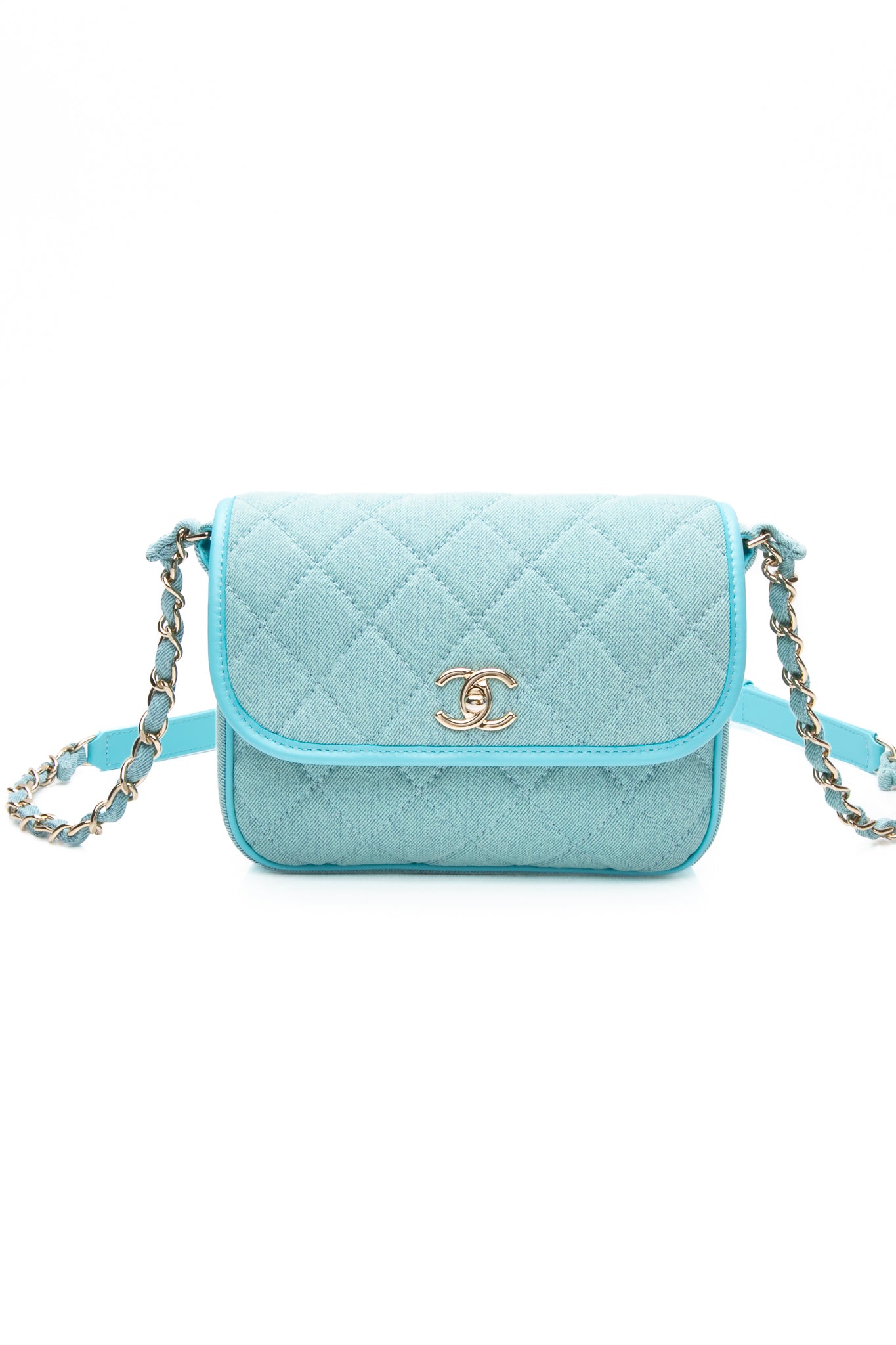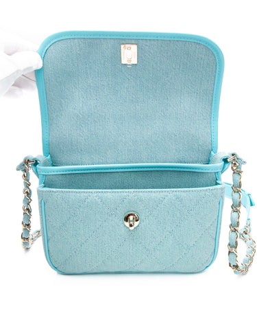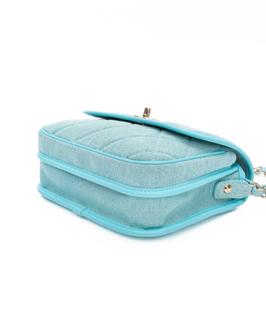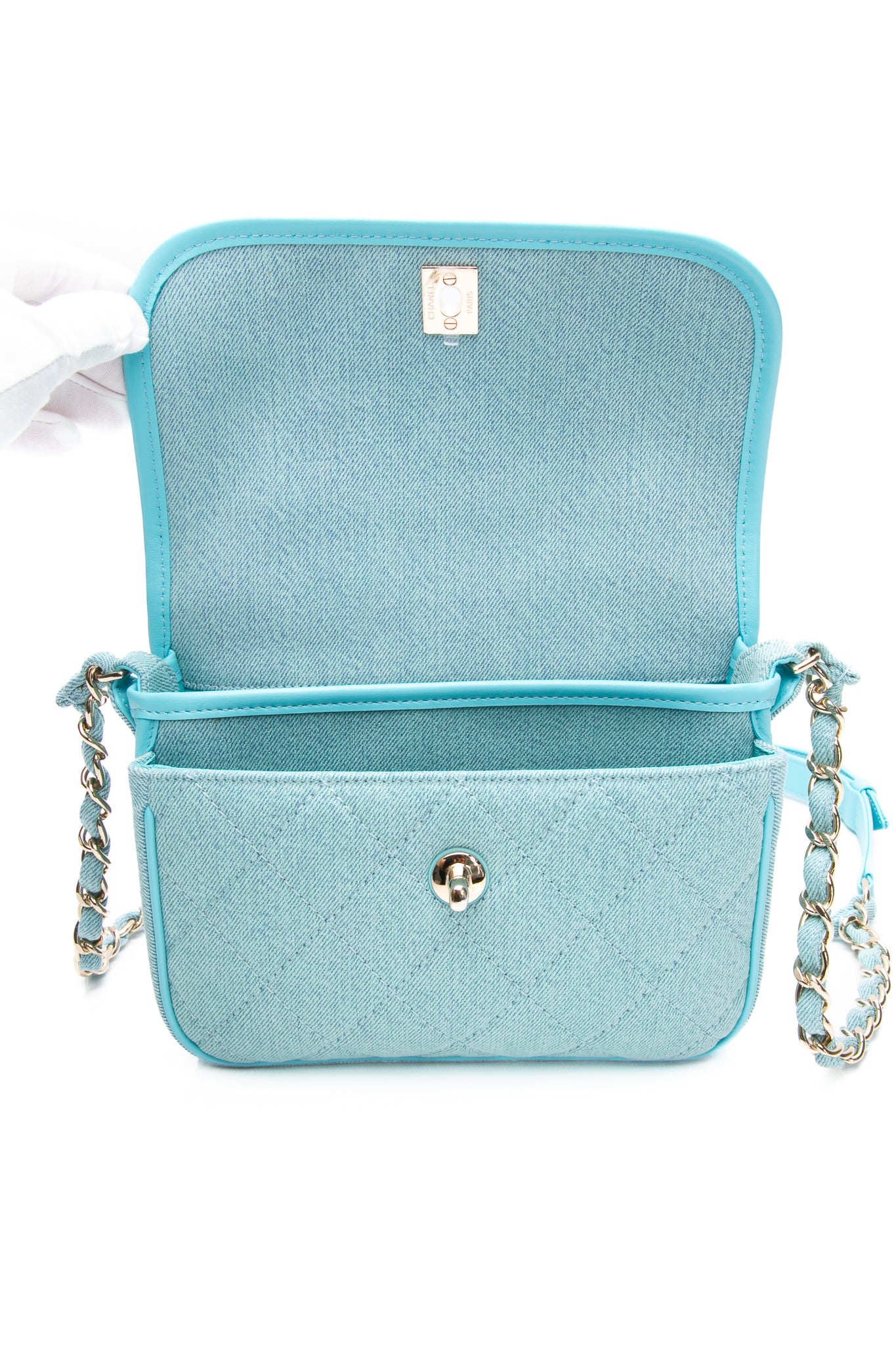 CHANEL Blue Denim CC Quilted Small Messenger Flap Crossbody Bag