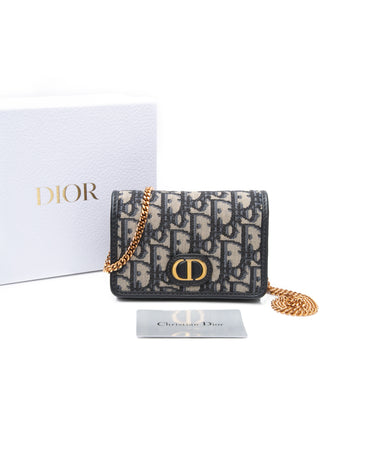DIOR Navy Blue Oblique Canvas Nano 30 Montaigne 2 in 1 Chain Pouch/ Belt Bag