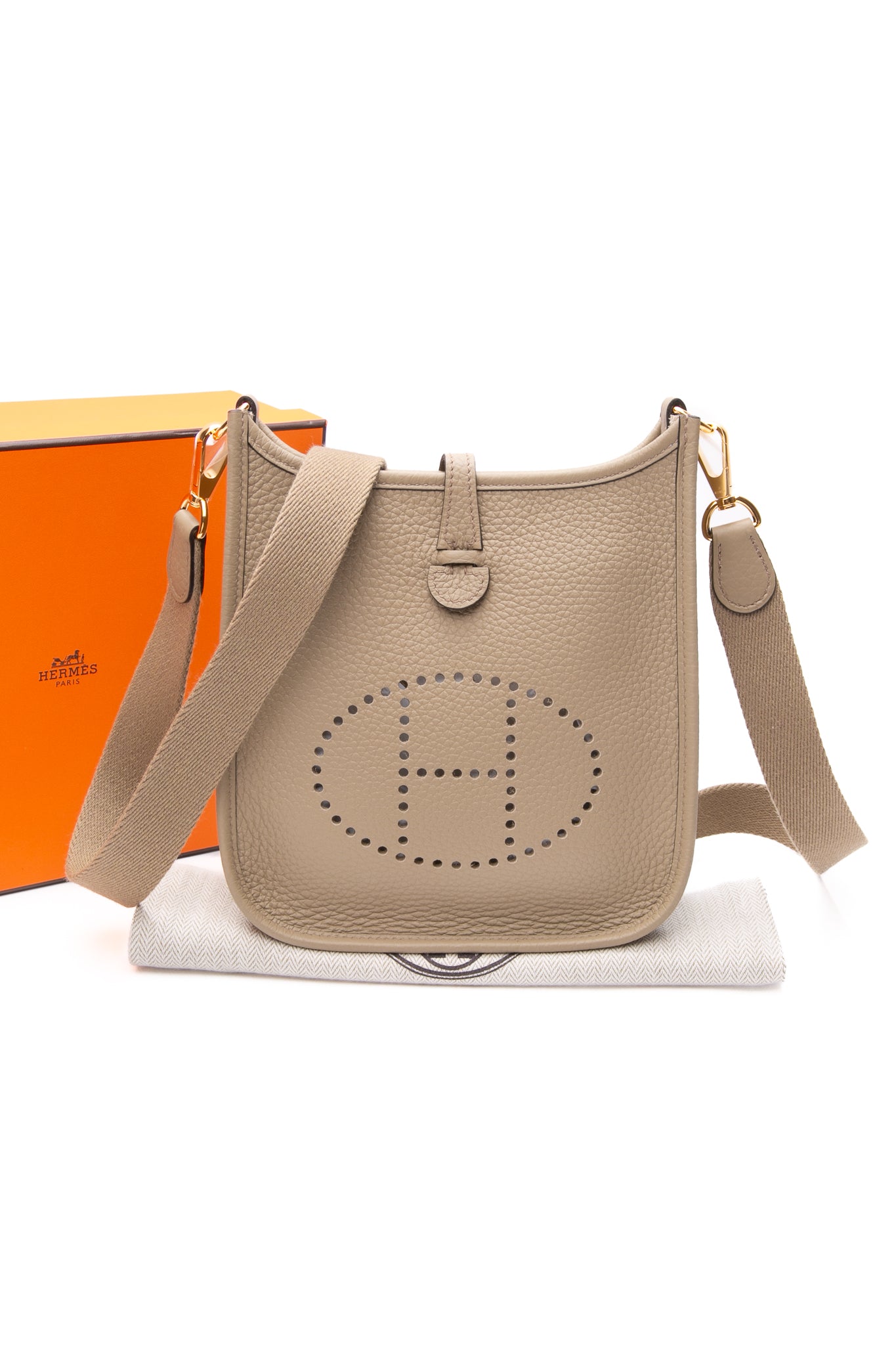 HERMES Beige Marfa Evelyne TPM Clemence Leather Crossbody (New)