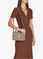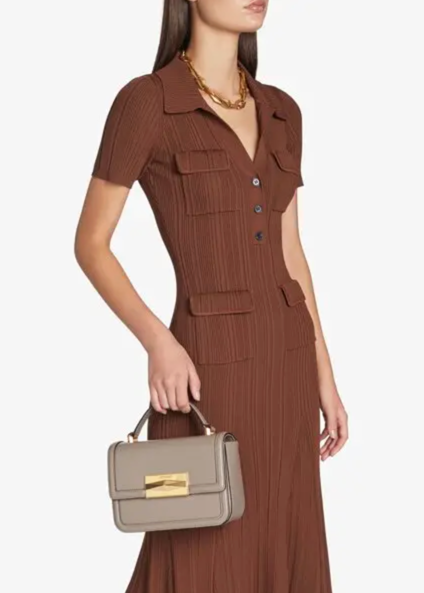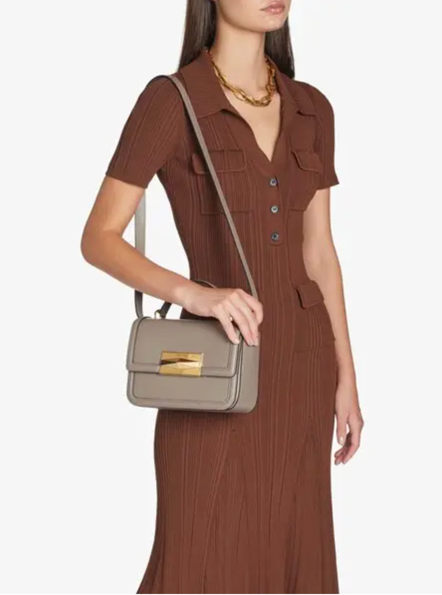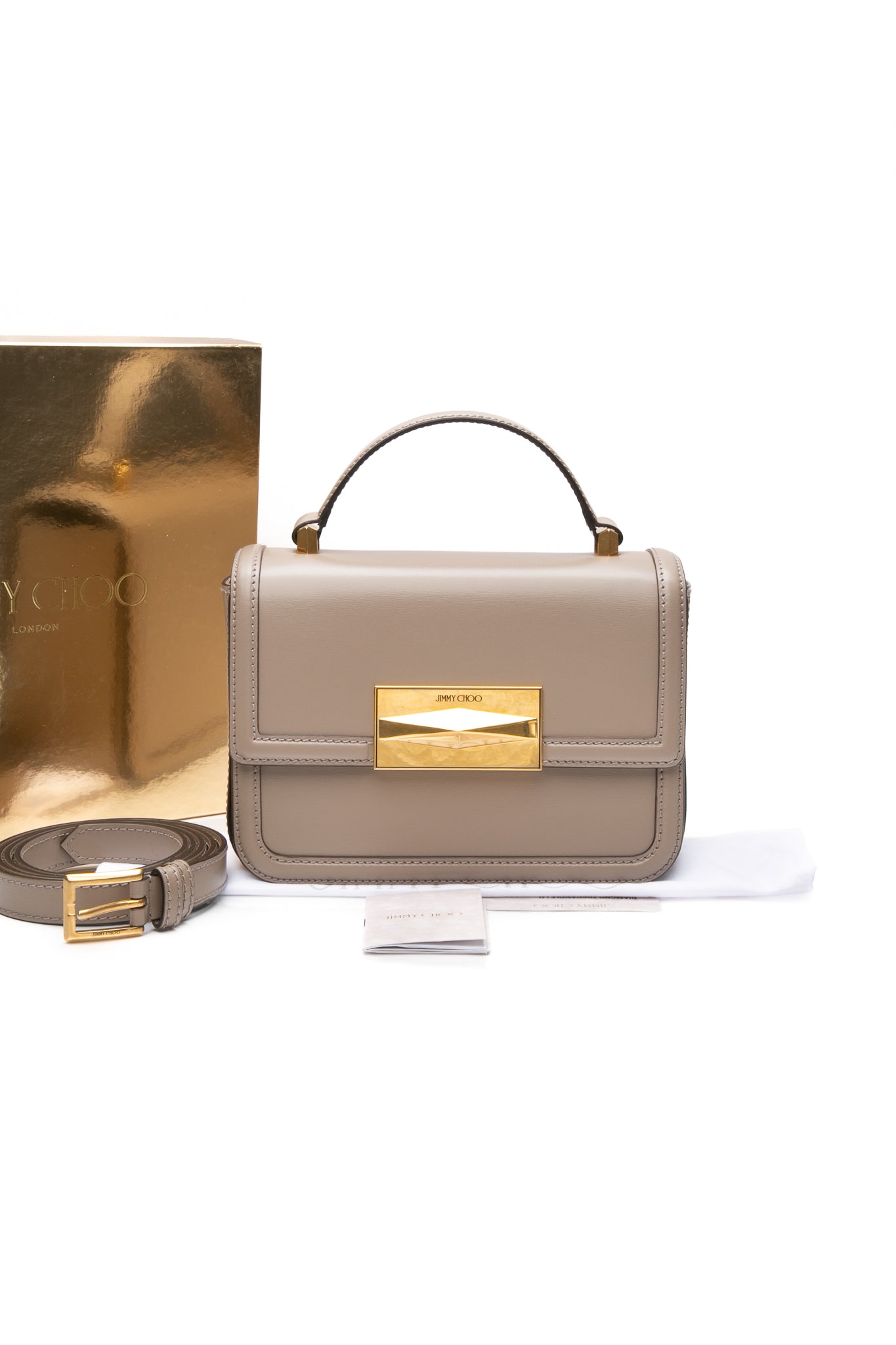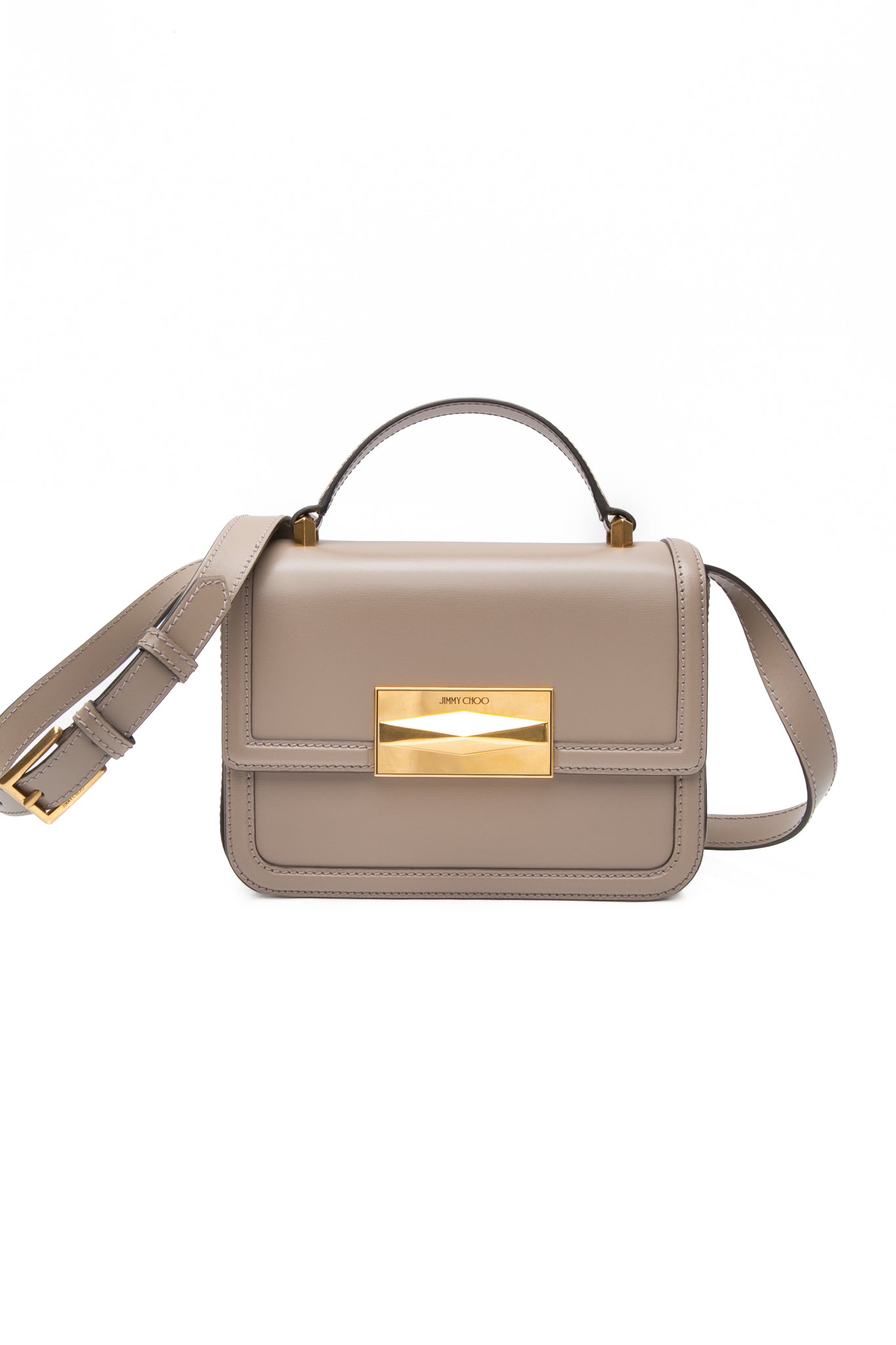 JIMMY CHOO Taupe Diamond Top Handle Leather Shoulder Bag