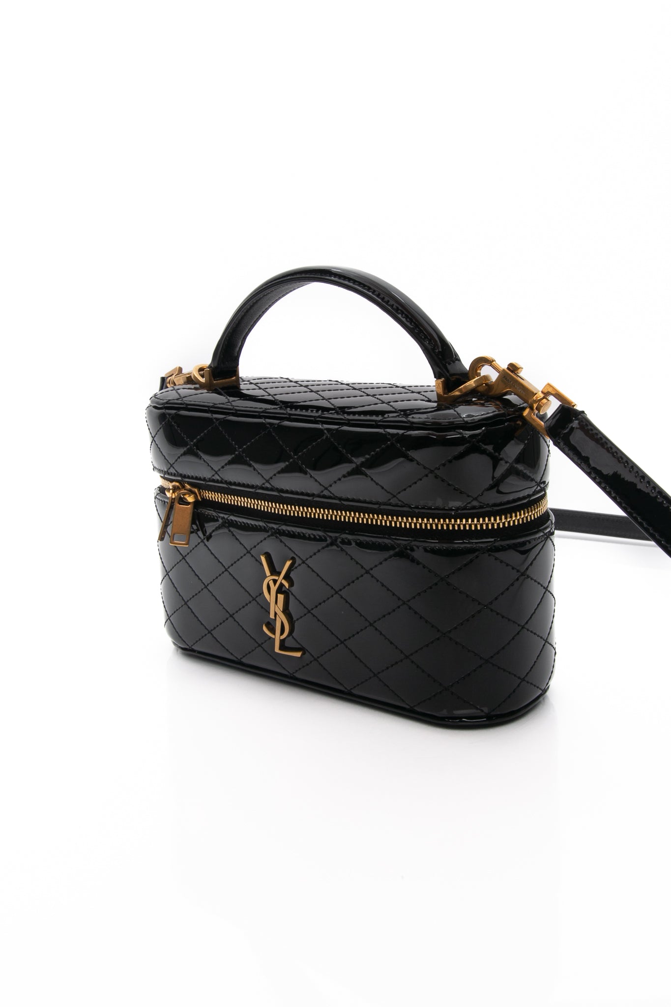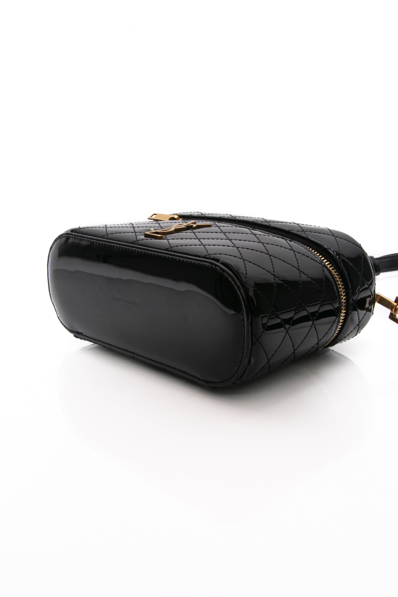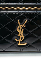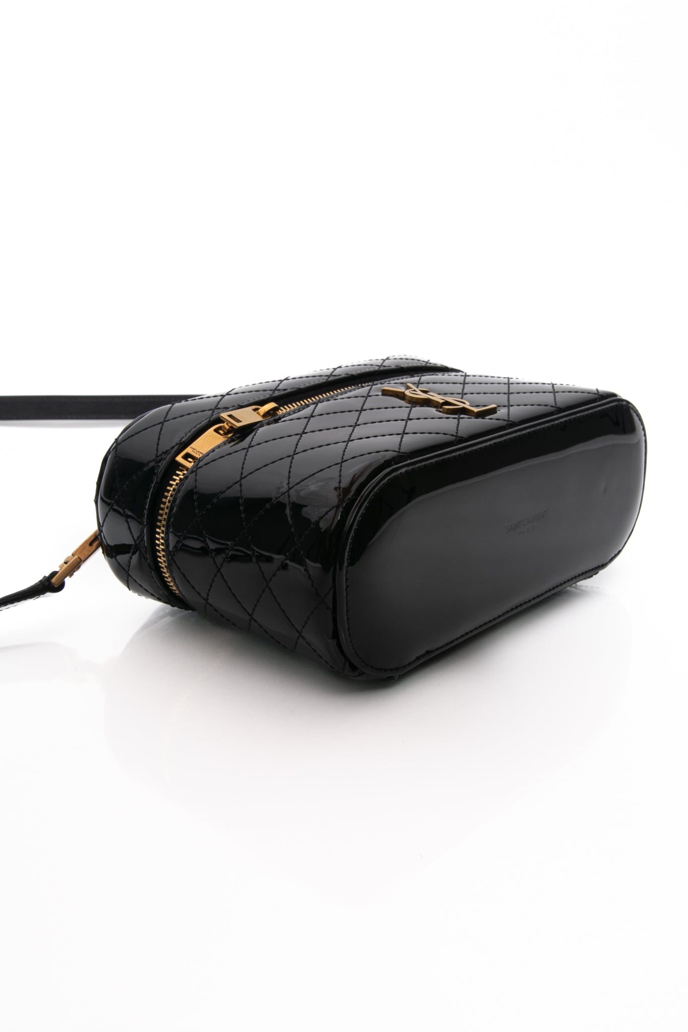 SAINT LAURENT Black Patent Leather Quilted Gaby Medium Vanity Case Crossbody Bag