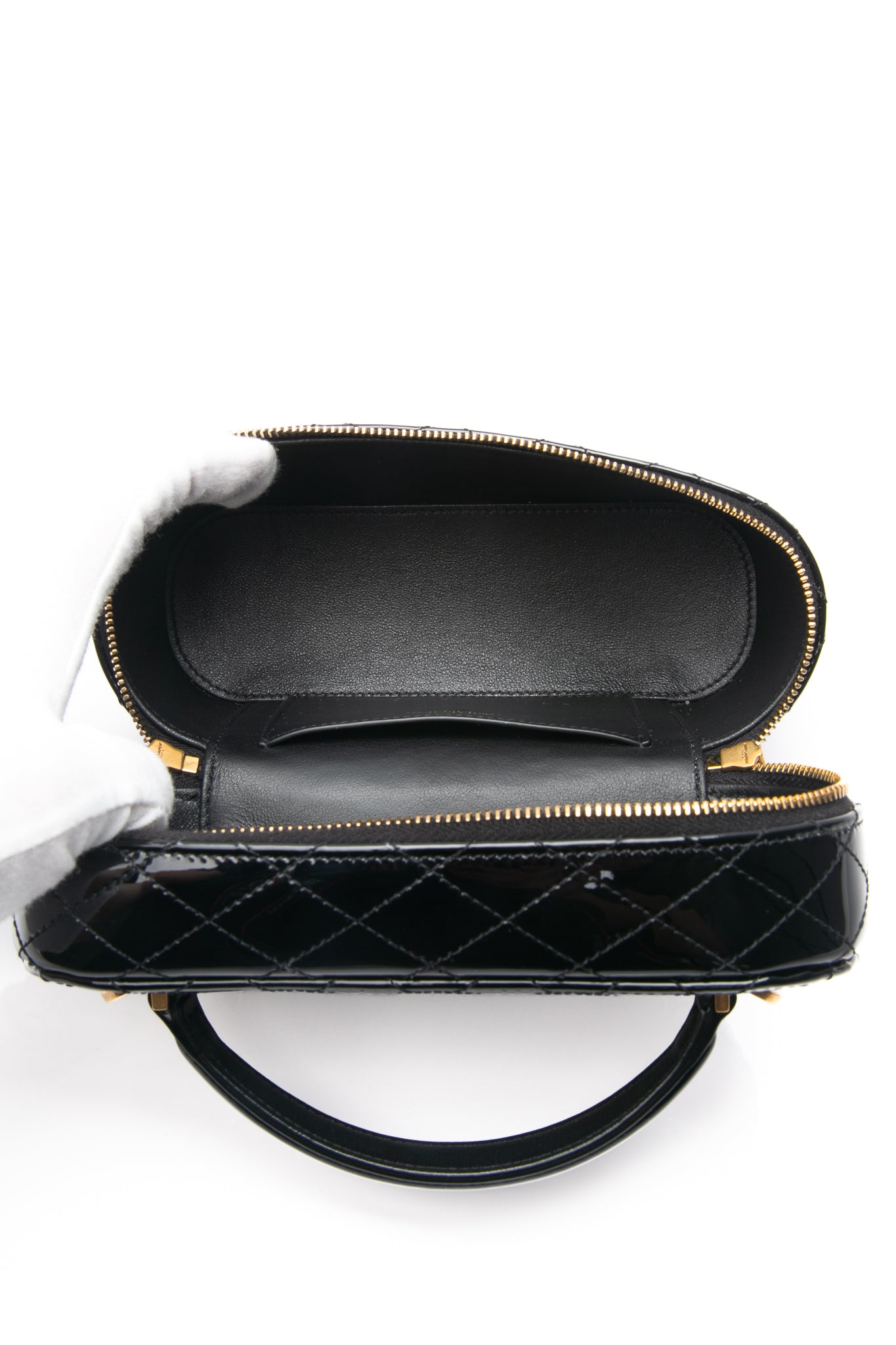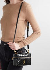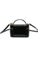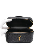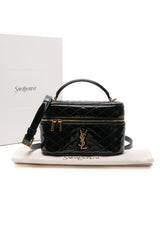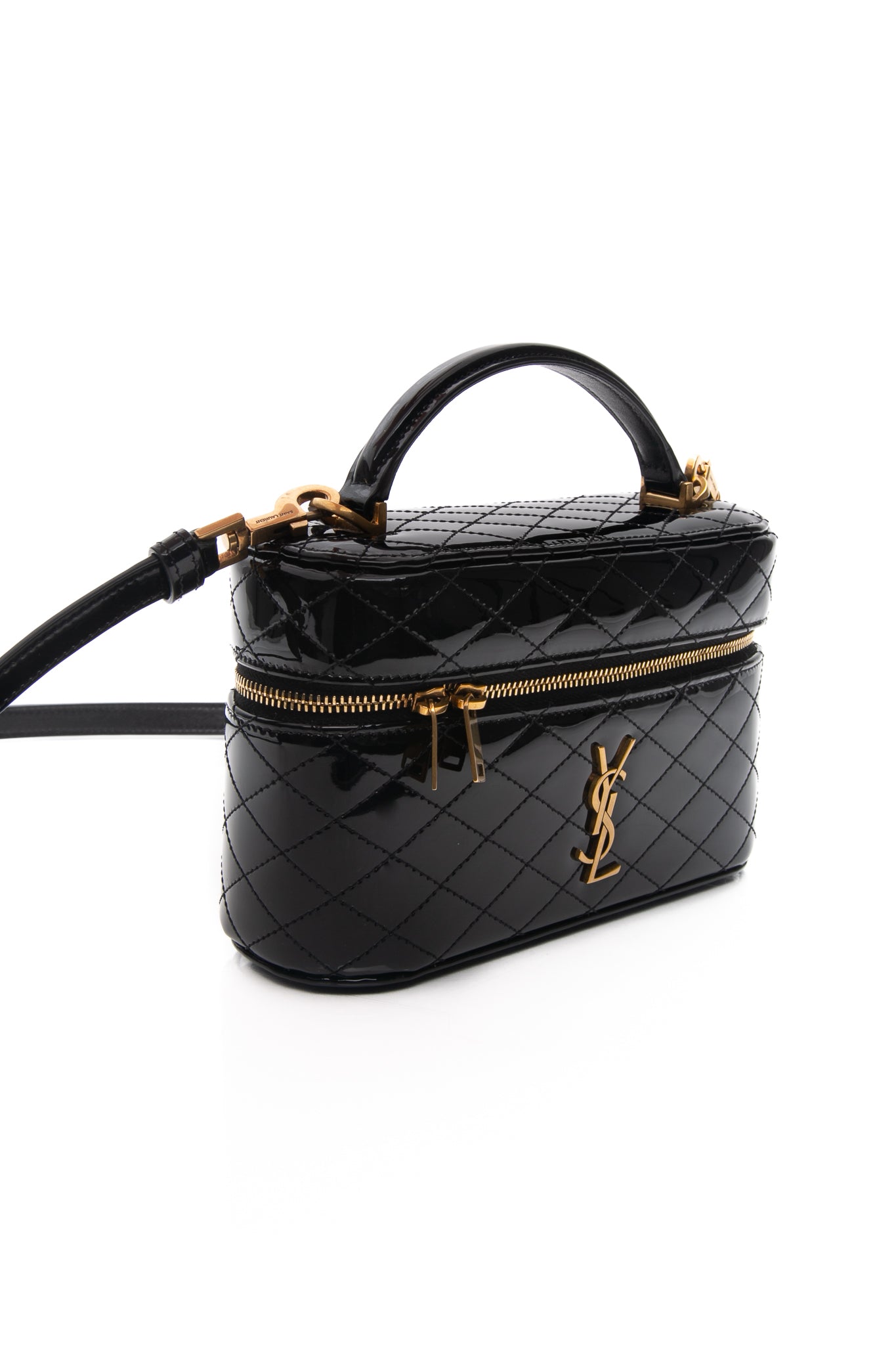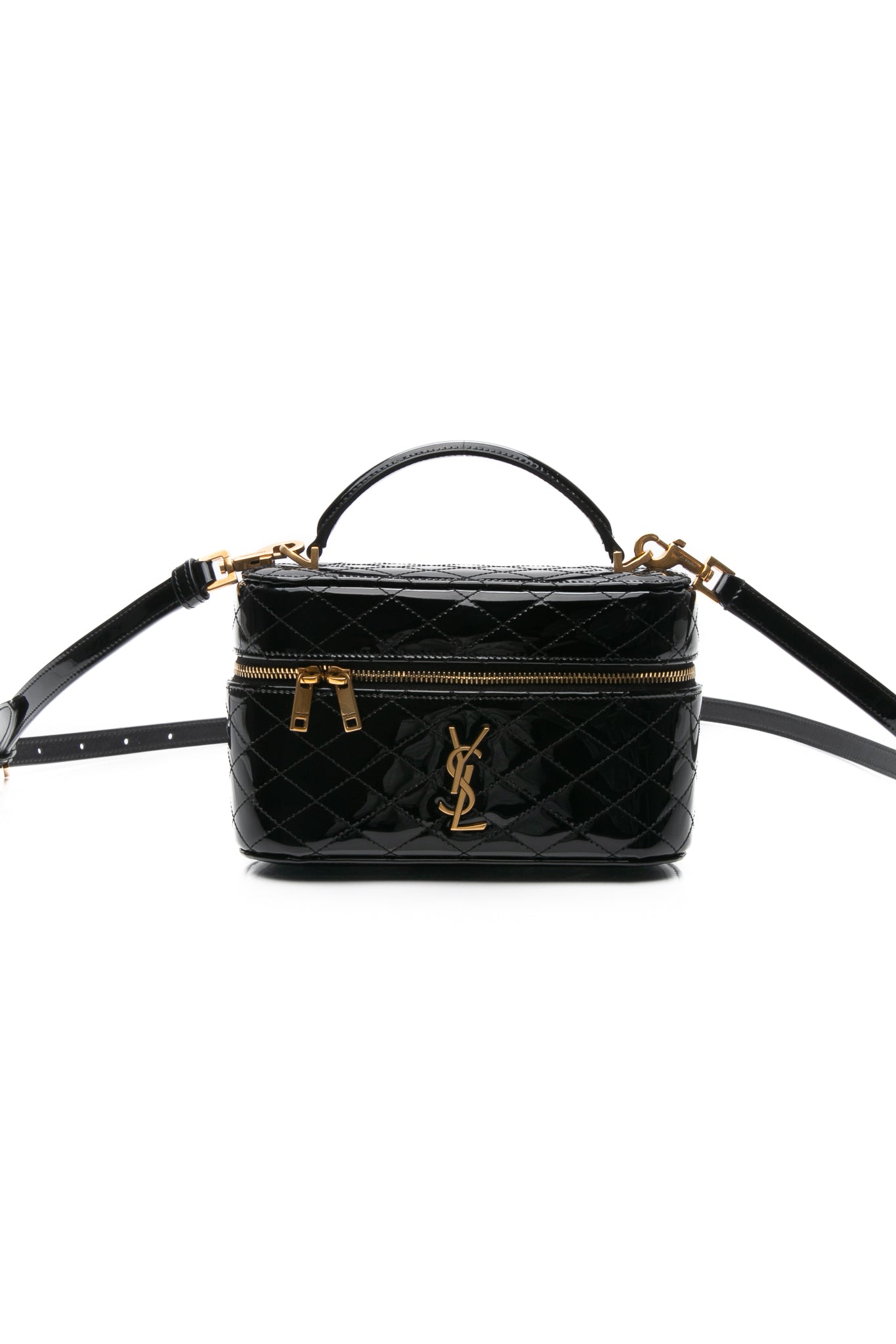 SAINT LAURENT Black Patent Leather Quilted Gaby Medium Vanity Case Crossbody Bag