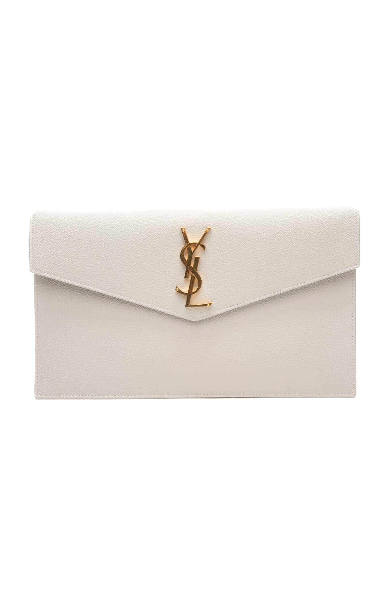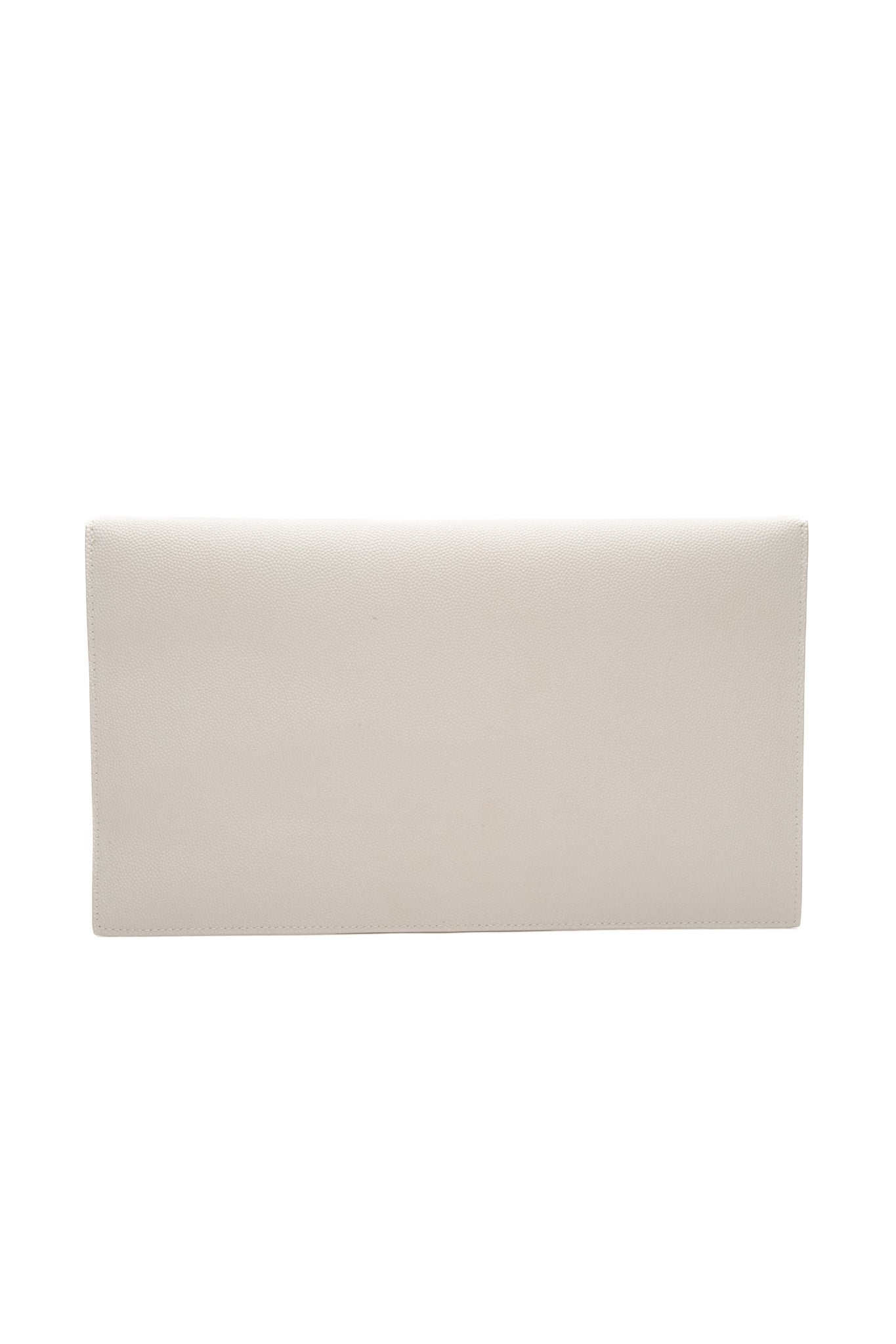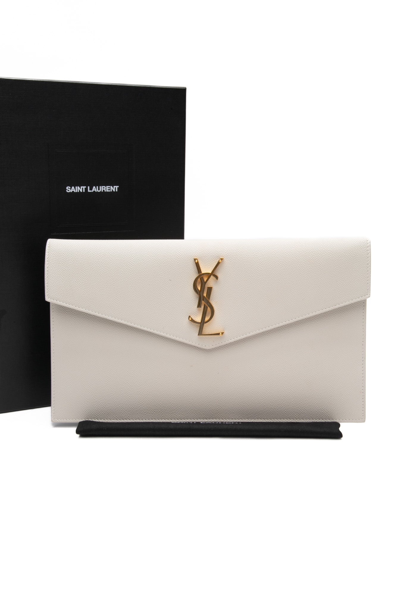 SAINT LAURENT Blanc Vintage Uptown Pouch in Grain de Poudre Leather Clutch