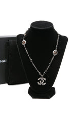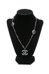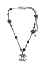 CHANEL Ruthenium Black and Grey Faux Pearl CC Necklace