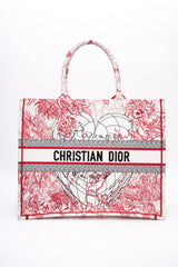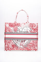 DIOR Red Multicolor Canvas Embroidered D-Royaume d'Amour Large Book Tote