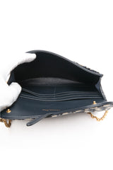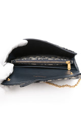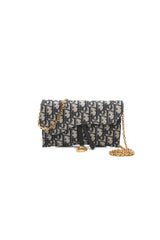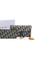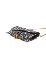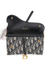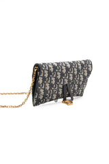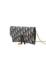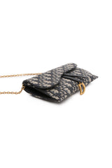 DIOR Blue Dior Oblique Jacquard Long Saddle Pouch Wallet With Chain Crossbody