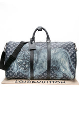 LOUIS VUITTON Navy Blue Chapman Brothers Lion Weekend Keepall Bandoulière 55