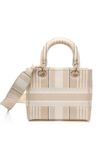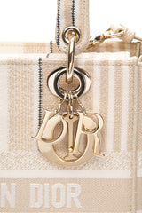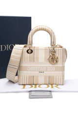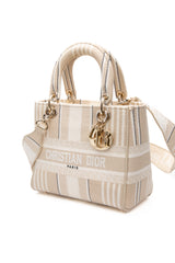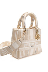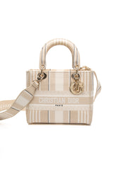 DIOR Neutral Canvas Embroidered Stripes Medium Lady D-Lite Bag