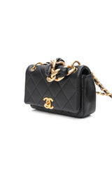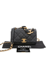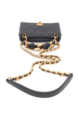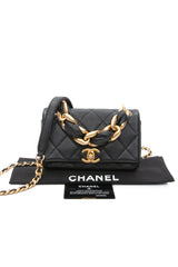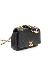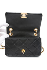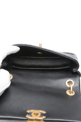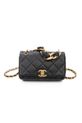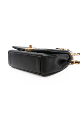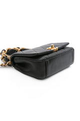 CHANEL Black Shiny Lambskin Small Chain Is More Flap Crossbody Bag