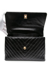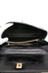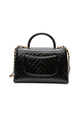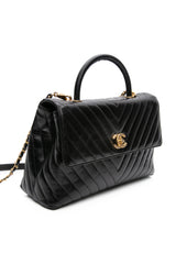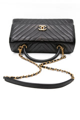 CHANEL Black Calfskin Chevron Quilted Medium Lizard Coco Handle Flap Bag