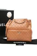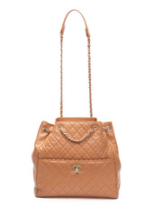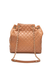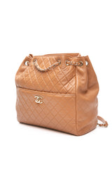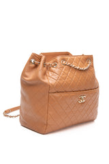 CHANEL Caramel Quilted Drawstring Bucket Bag