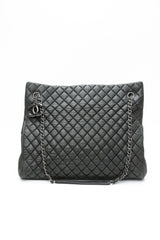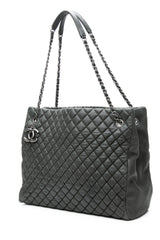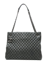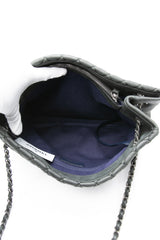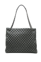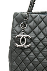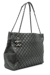 CHANEL Dark Green Iridescent Calfskin Quilted New Bubble North South Tote Bag
