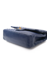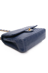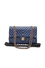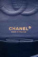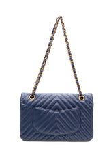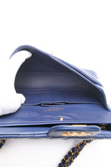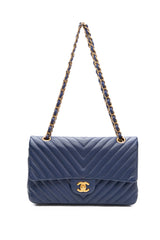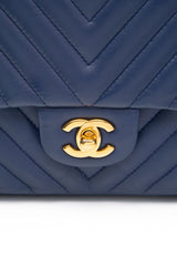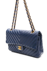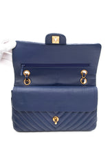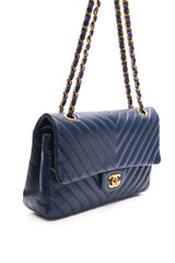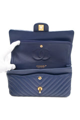 CHANEL Navy Blue Medium Classic Lambskin Chevron Double Flap Bag